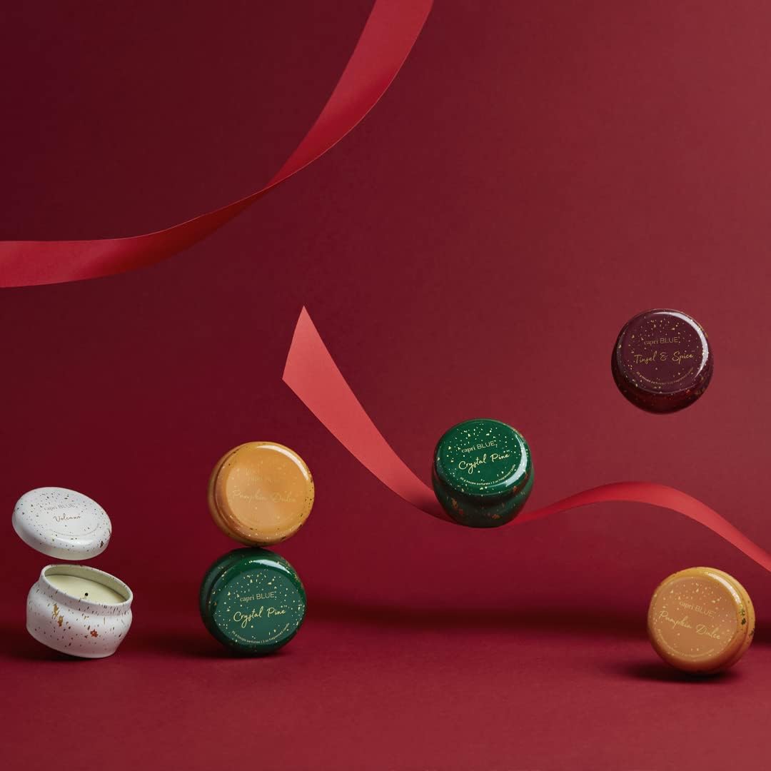 Capri Blue Glimmer Mini Tin - Volcano Scented Candle with Mini Tin Candle Holder - Soy Wax Blend - White and Gold (3 oz)