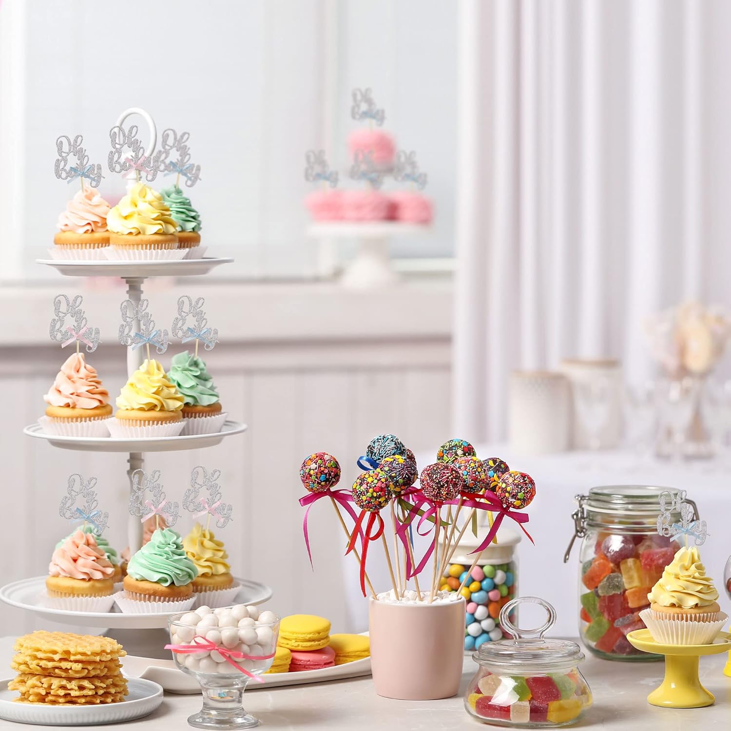 - ๐๐Premium Material: These Silver Oh Baby with Bowknot Cupcake Toppers are made of 300 gram glitter card stock and food-grade toothpick, very safe to put them on cakes, cupcakes, ice cream, fruits, pie, dessert, cheese or any dish and food appetizer you want to decorate.