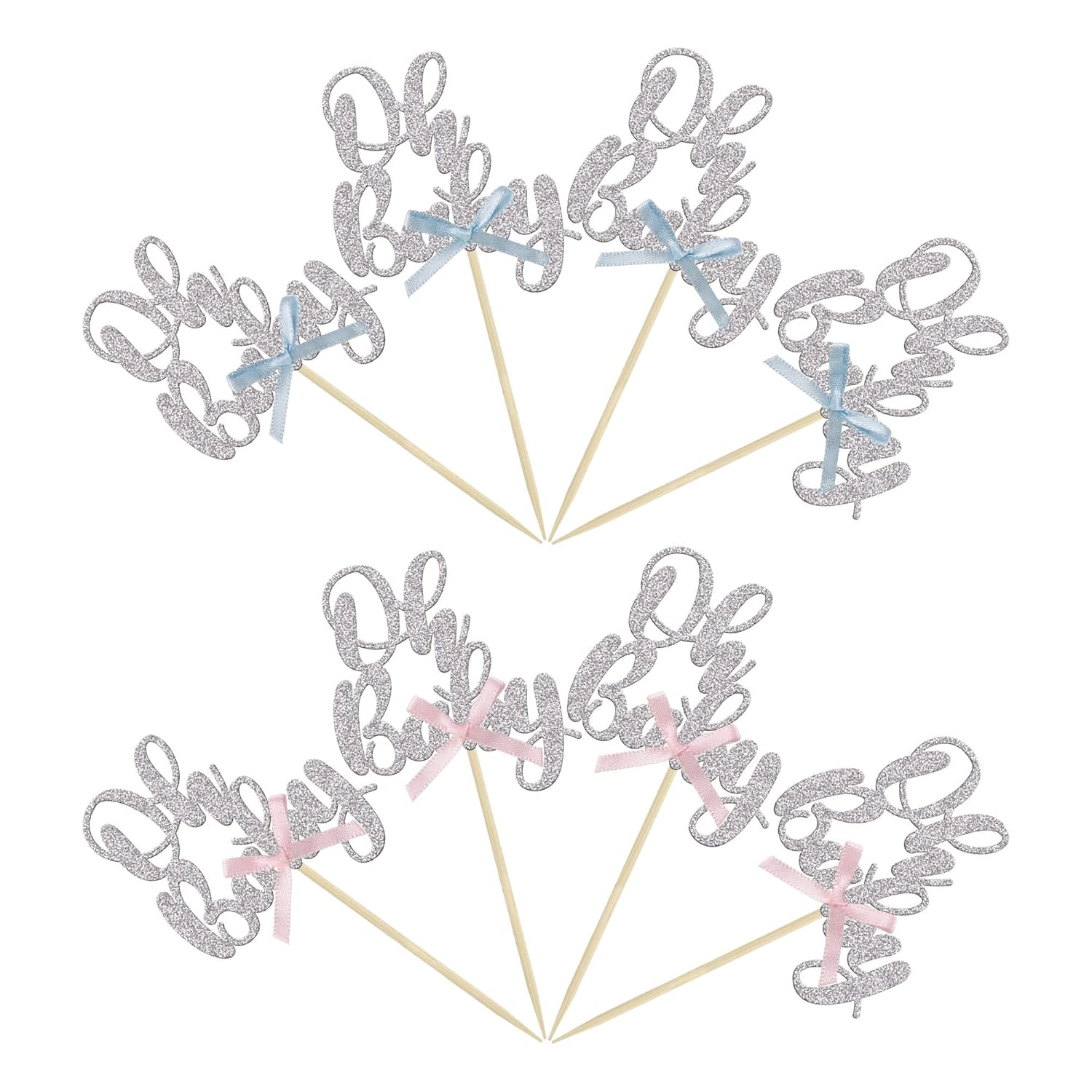- ๐๐These Silver Oh Baby with Bowknot Cupcake Toppers are so cute and good for oh baby theme party, gender reveal party, baby shower theme party, kids birthday party cupcake decorations. They can make your cupcake more attractive and bring the fun to your party. You can also apply them for ice cream, fruits, cookies and other desserts.