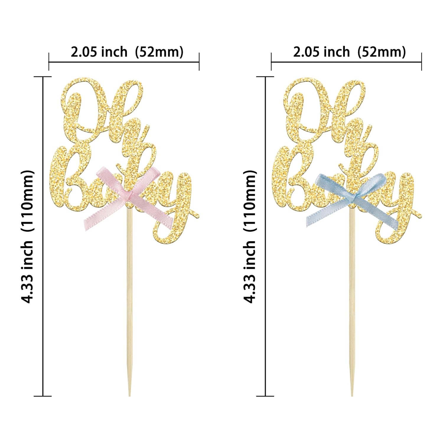 - ๐๐Premium Material: These Gold Oh Baby with Bowknot Cupcake Toppers are made of 300 gram glitter card stock and food-grade toothpick, very safe to put them on cakes, cupcakes, ice cream, fruits, pie, dessert, cheese or any dish and food appetizer you want to decorate.