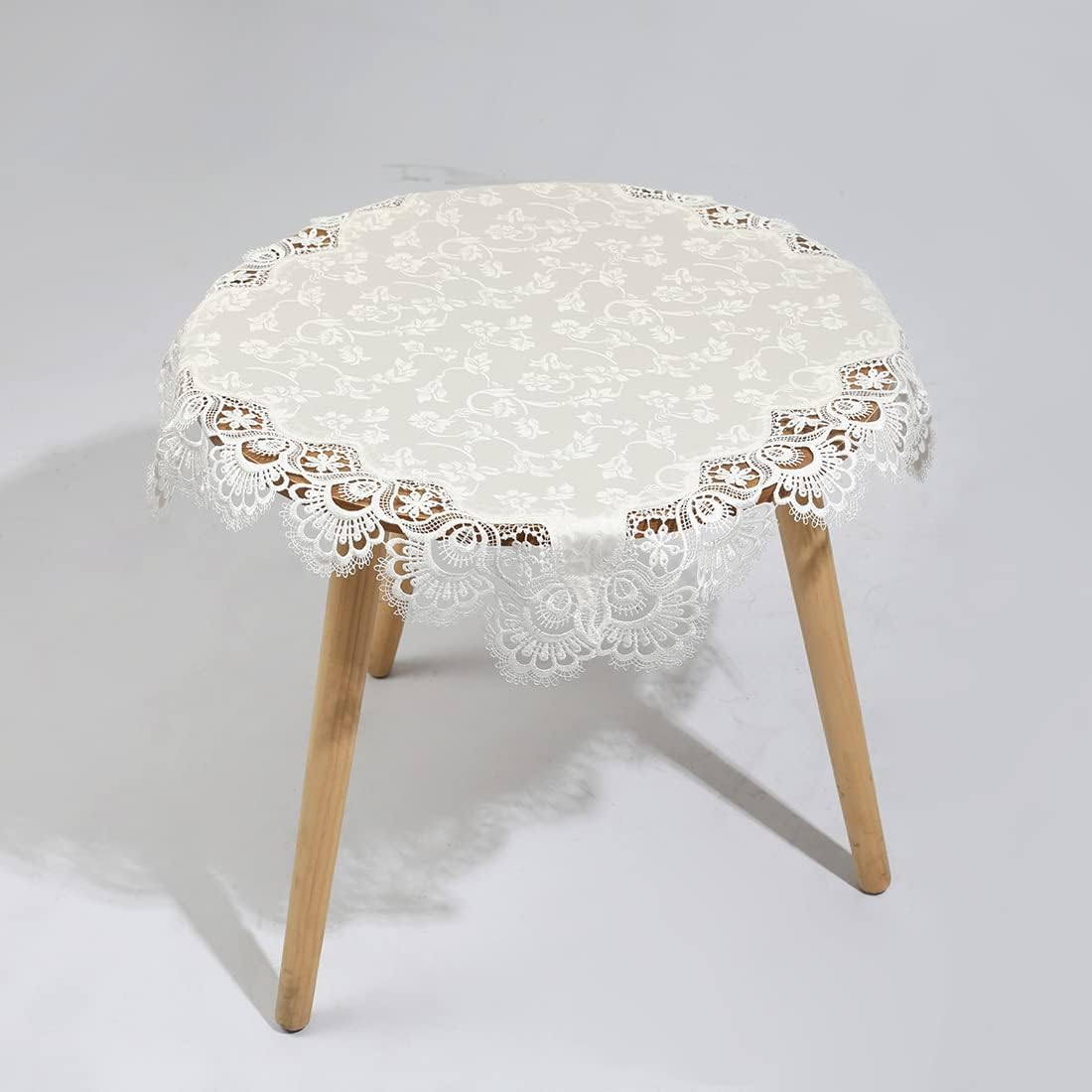 - Material: Made of high quality polyester,not easy to wrinkle and shrink, makes you table beautiful.Please pay attention, 22x22 inch small tablecloth top didn't have lace part.