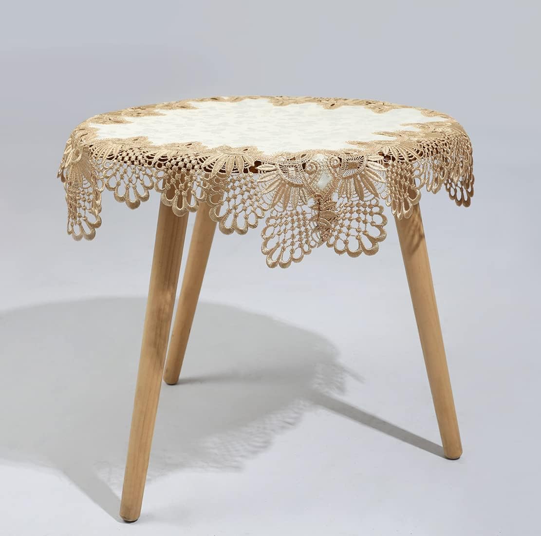 - Material: Made of high quality polyester,not easy to wrinkle and shrink, makes you table beautiful.Please pay attention, 22x22 inch small tablecloth top didn't have lace part.