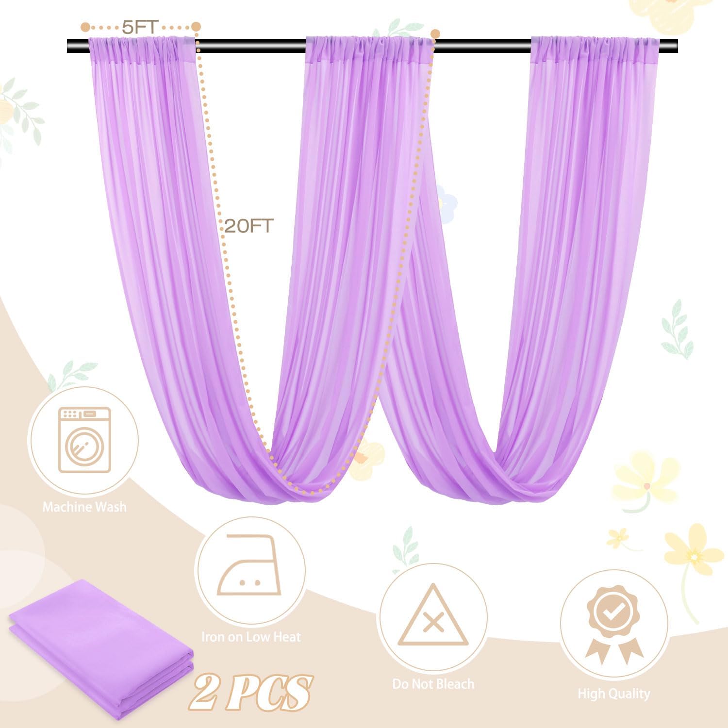- ✿【Size - Ceiling Drapes for Weddings】Package includes 2 panels light purple ceiling curtain. Size of each panel is 5FT( 60 inches) width by 20FT( 240 inches) length covering a total area of 10ft width x 20FT length. This wedding drapery party ceiling drapes can help your party to create a warm and elegant scenes.