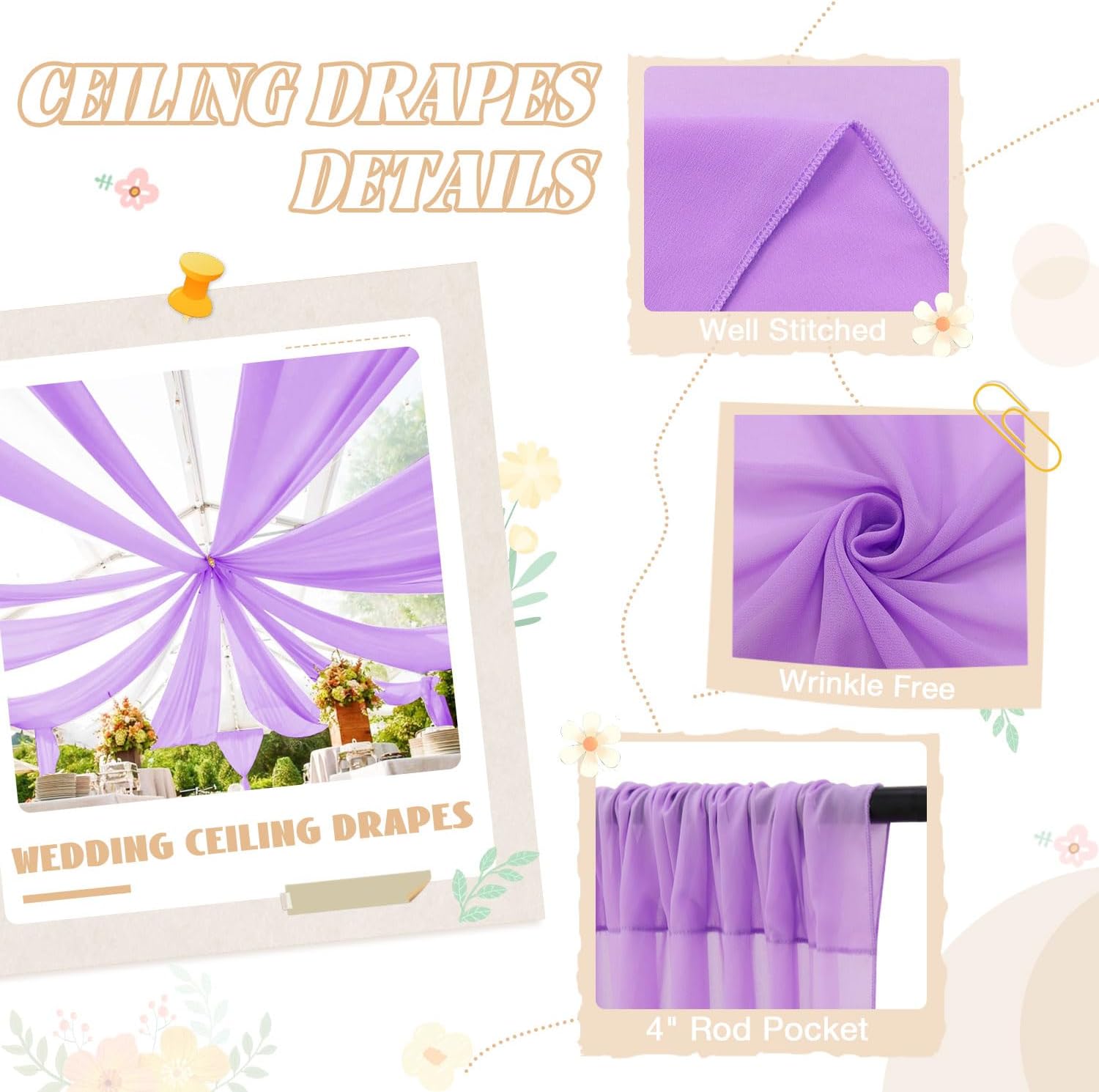 - ✿【Multi-Scenes Uses - Tent Ceiling Drapes Outdoor Indoor】Purple sheer ceiling curtains is the best choice for wedding ceremony, weding arch, swag decorations, home decorations, ceiling decorations, tent decorations, engagement, stage, bridal shower, baby shower, anniversary, banquet, prom, birthday, celebration, graduation, party, reception, photography, photo booth, holiday and special events.