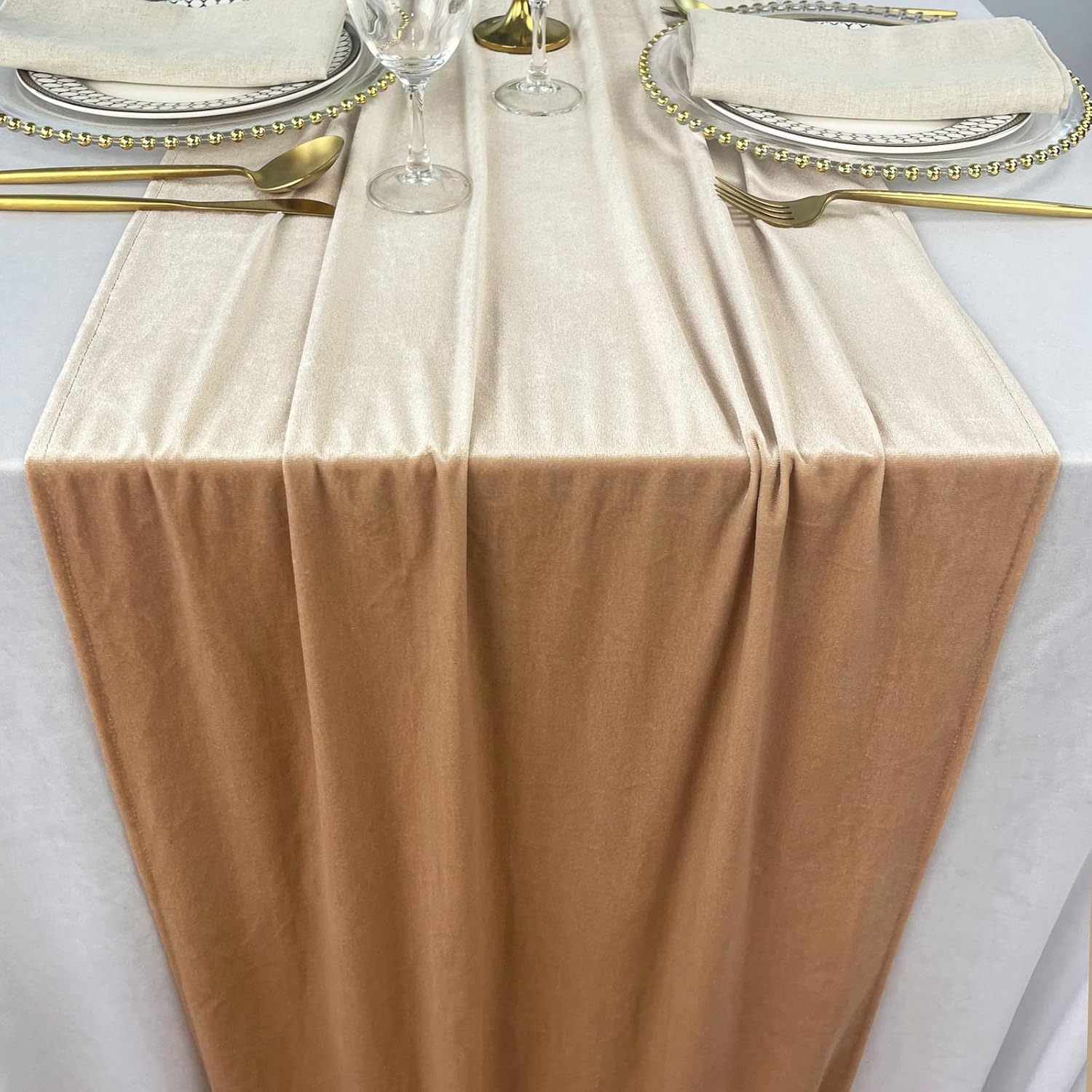 Luxurious Velvet Table Runner, 10ft Wedding Reception Decorations, 20x120inch Soft Velvet Fabric, Table Linen Overlay, Wedding Table Runners (Champagne, 20X120inch)