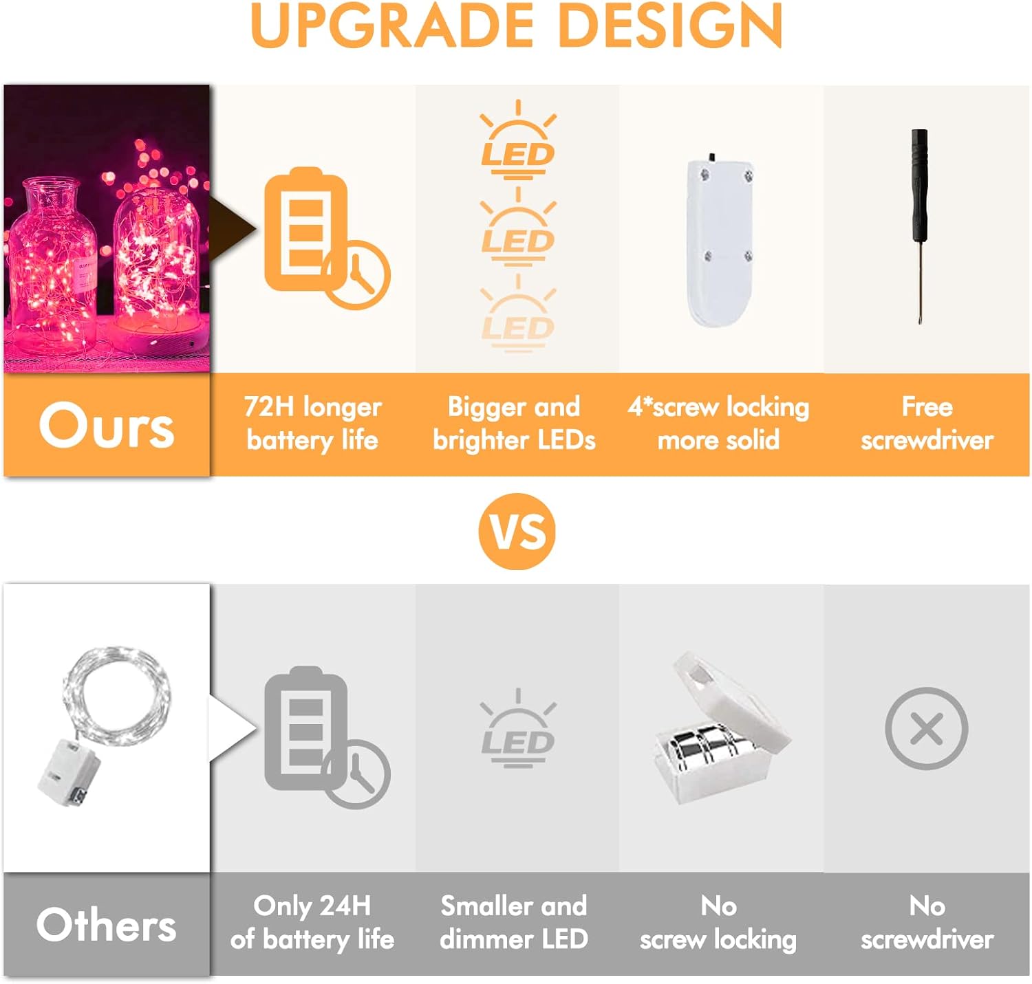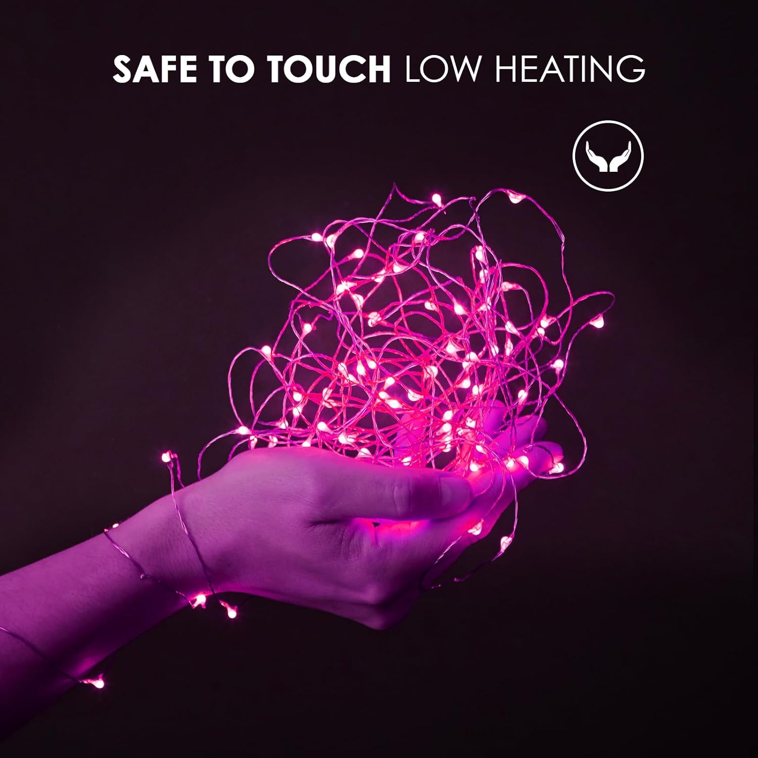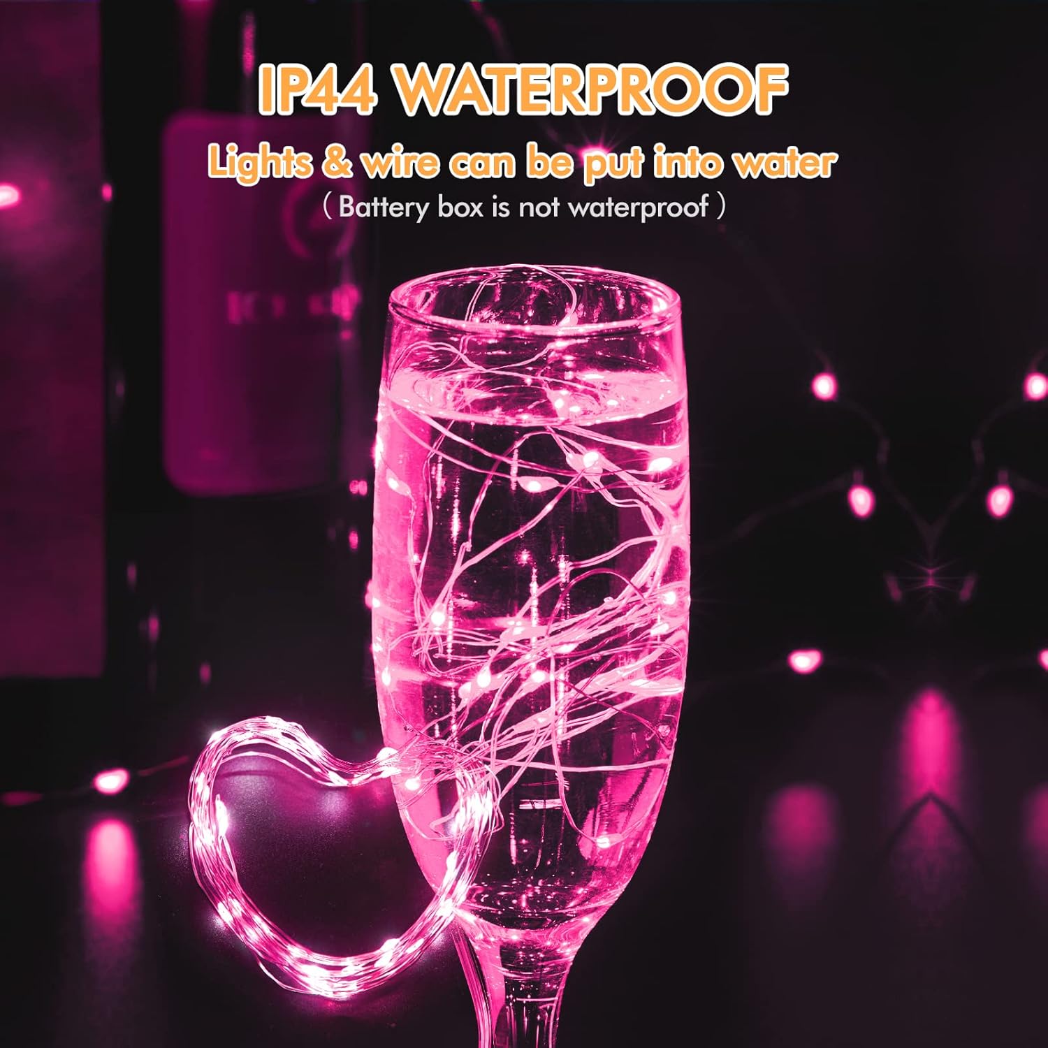 - ✨【12 Packs High-Quality Fairy Lights】 There are 12 packs of LED pink fairy lights inside each box, Each string of fairy string lights is equipped with 20 super bright mini LDE lamp beads, The light flashes 360 degrees without glare and soft light to protect your eyes. The fairy lamp wire is 7ft long and made of soft copper wire. It can be bent into any shape you like or wrapped around anything you want to decorate. These fairy lights can make everything that is decorated by them dazzling