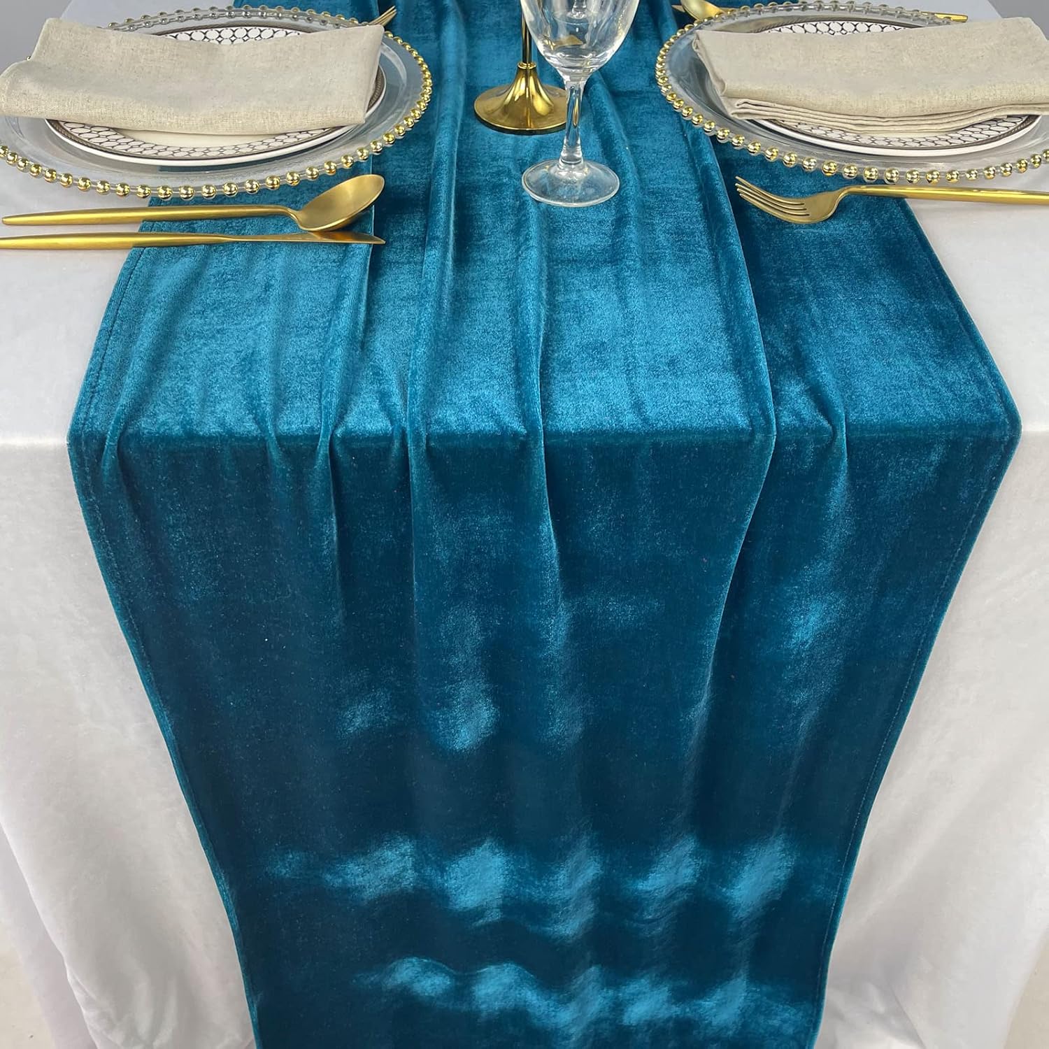 Velvet Table Runner, 10ft Luxurious Wedding Reception Decorations Soft Velvet Fabric Table Linen Overlay for Party (20 x 120 inch, Teal Blue)