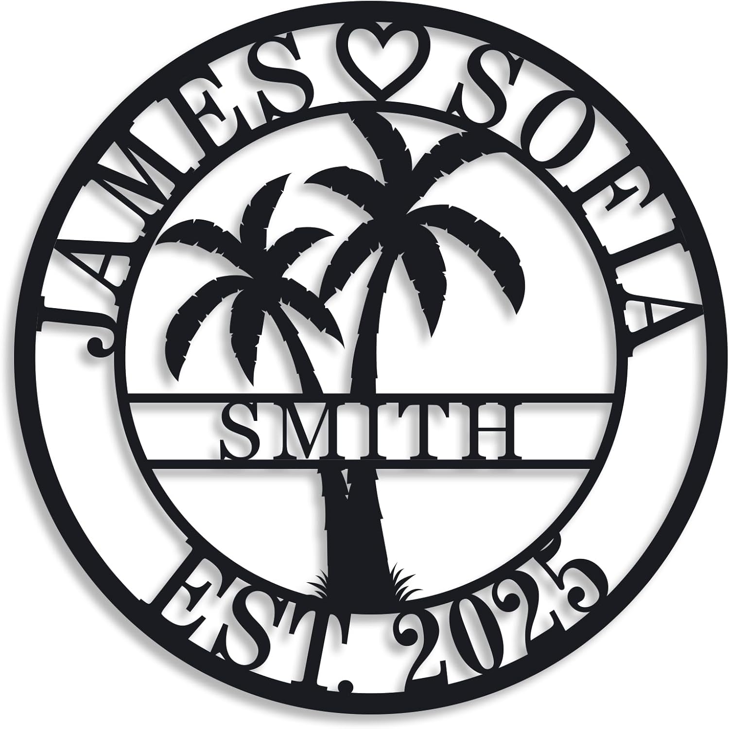 - 🌴【Premiun Material】Our metal monogram name sign is beautifully crafted from sturdy 14 gauge steel with unique laser technology, every step of the process is focused upon producing a finished product that your family will cherish for generations. The surface of personalized metal sign is smooth and the edges are free of burrs. Weather & Rust Resistant.