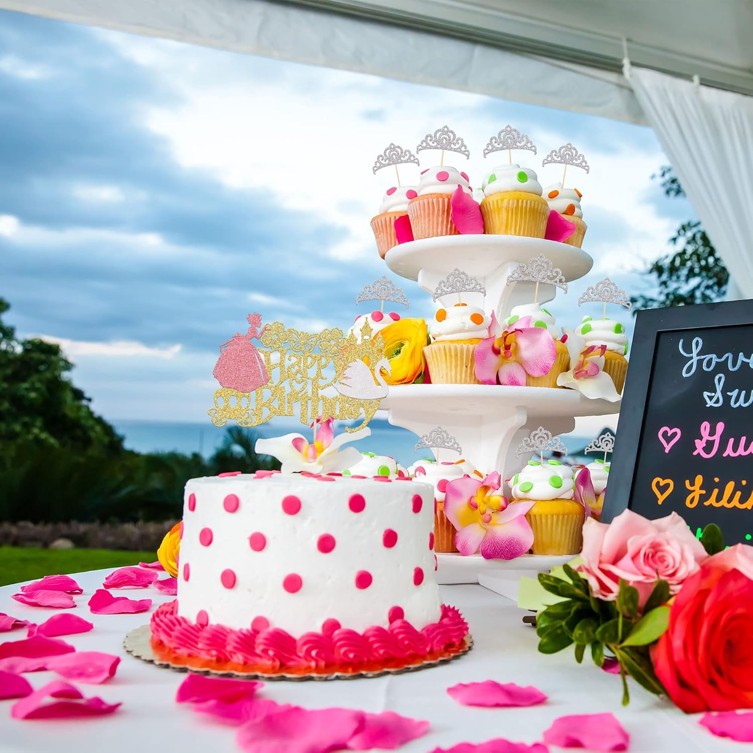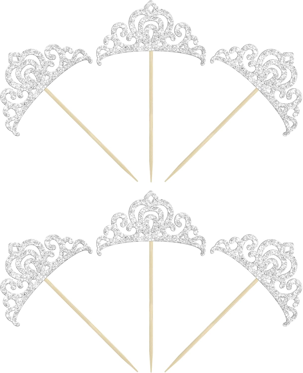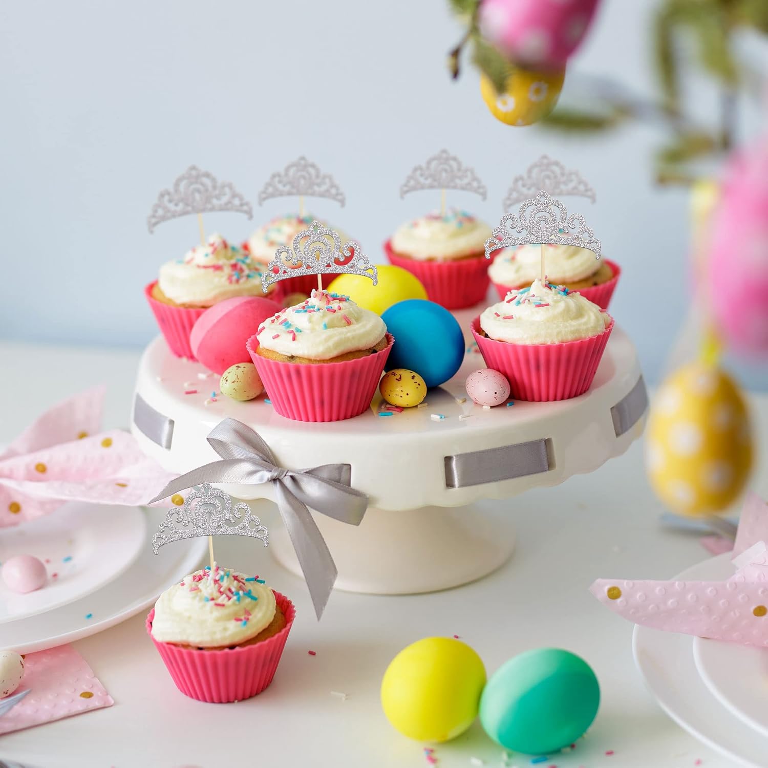 Gyufise 24Pcs Silver Princess Crown Cupcake Toppers Glitter Princess Cake Pick Decorations for Wedding Girl Birthday Baby Shower Party Decorations