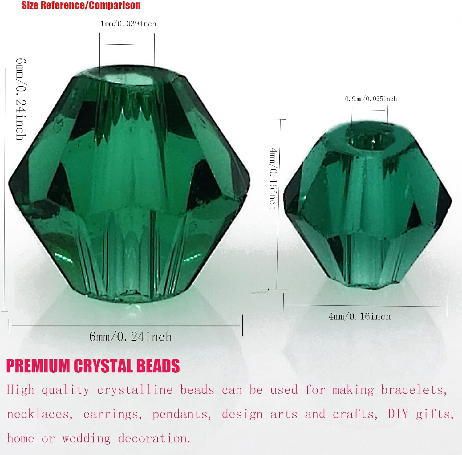 - 【PACKAGING and SIZE】 Package includes 1800Pcs 4mm Bicone faceted crystal glass beads in green color.Bead size: 4mm (or ~ 0.16 inch); Hole diameter ~ 0.9mm ( ~ 0.035 inch).In addition, we provide you with some stretchy cord and add an organza bag.Let your family and friends enjoy DIY happy time together.Kindly note: Please make sure this small bead size meets your needs before placing an order,thank you.