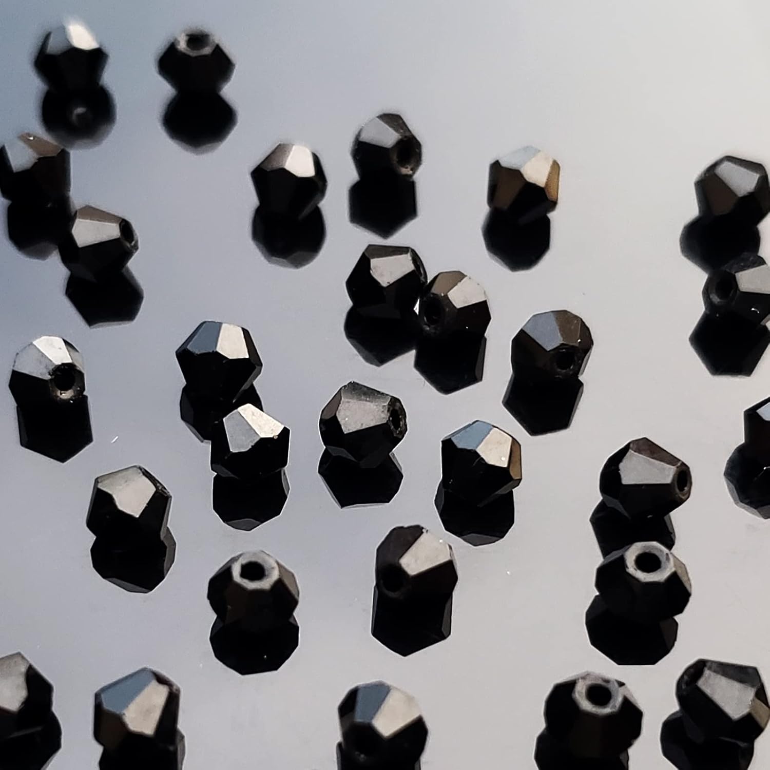 - 【PACKAGING and SIZE】 Package includes 450Pcs 6mm Bicone faceted crystal glass beads in black color. Bead size: 6mm (or ~ 0.24 inch); Hole diameter ~ 1mm ( ~ 0.039 inch).In addition, we provide you with some stretchy cord and add an organza bag.Let your family and friends enjoy DIY happy time together.Kindly note: Please make sure this bead size meets your needs before placing an order,thank you.