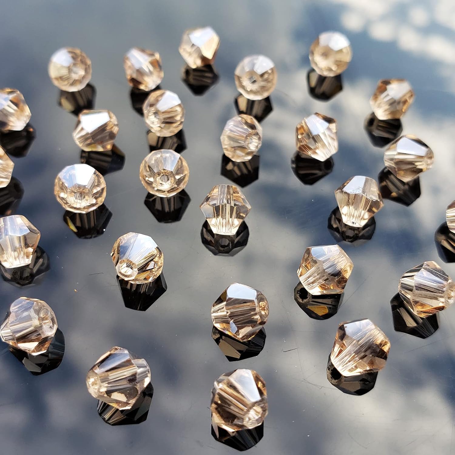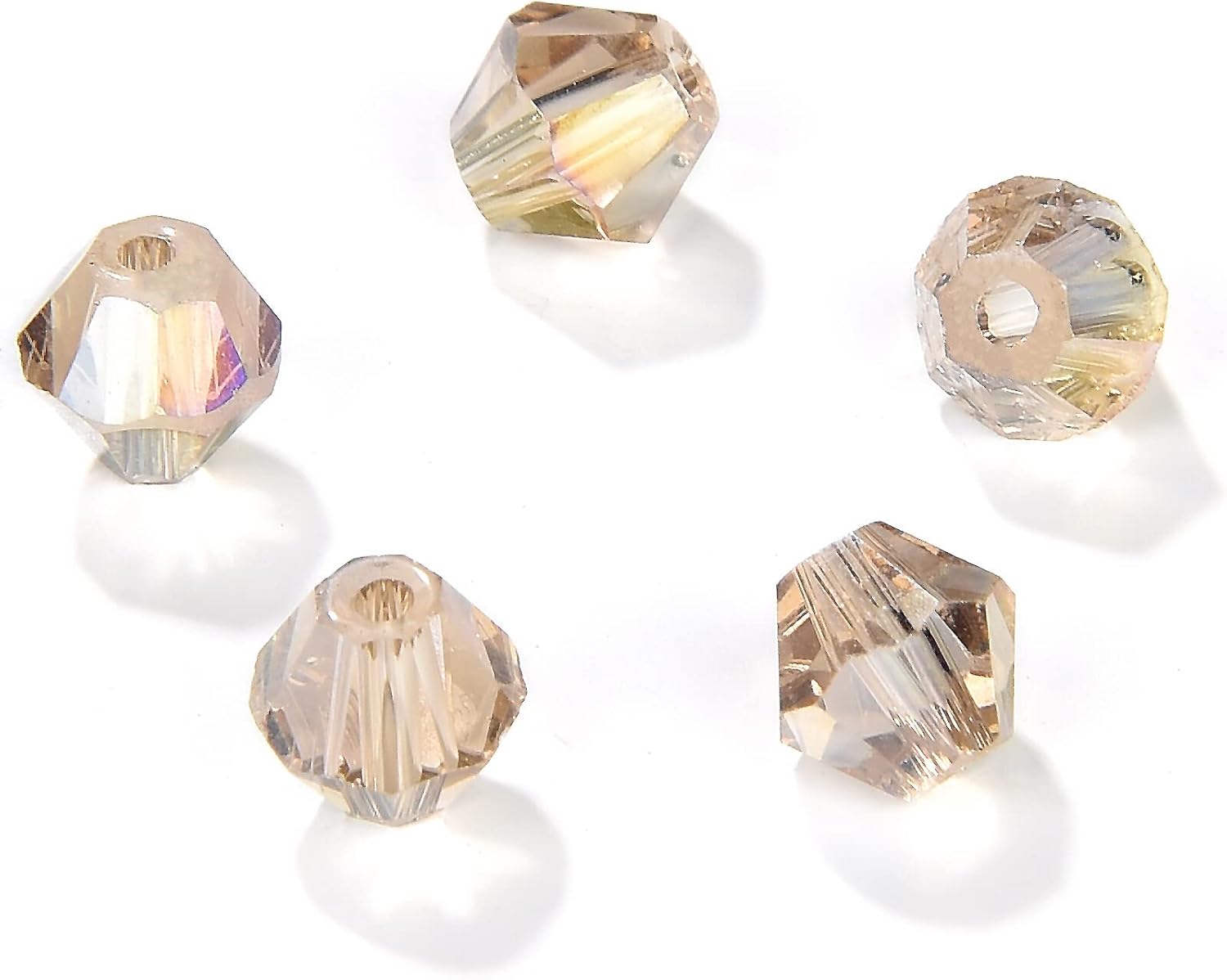- 【QUALITY MATERIAL】Made of high quality crystal glass (synthetic quartz),odorless and non-toxic. Crystal with multi-faceted Bicone shape design will refract light,multi-faceted cutting, not easy to break or deform, durable, different light will show different colors and add a gorgeous glow to your jewelry or crafts. The actual color effect of the bicone beads is very good, rich, uniform and bright, better than the picture, worth trying.