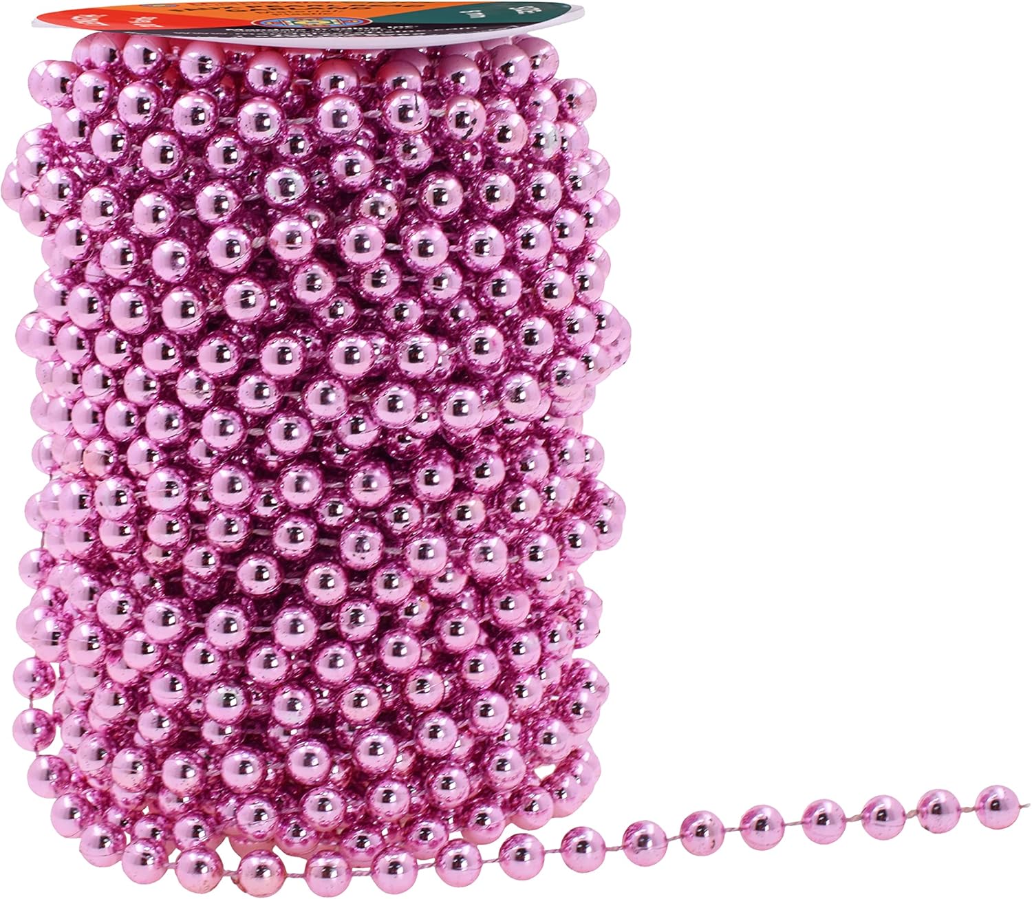 Mandala Crafts 8mm Faux Pink Pearl Beads Roll - 20 Yards Strand of Fake Pearls Chain Garlands Spool String for Christmas Tree, Wedding, Party, Vases, DIY Decoration