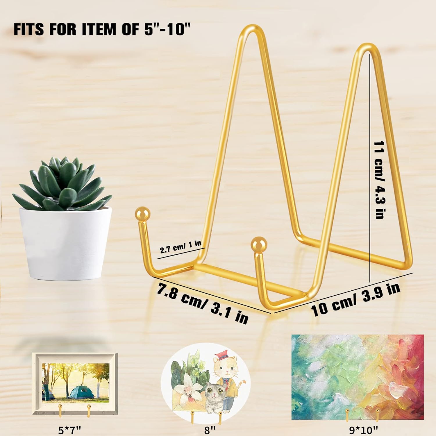 Decolore 4 Pack 4 Inch Display Stands Gold Plate Stands Metal Frame Holder Stand for Picture, Decorative Plate, Photo Easel, Artistic Work Display Stand, Picture Frames
