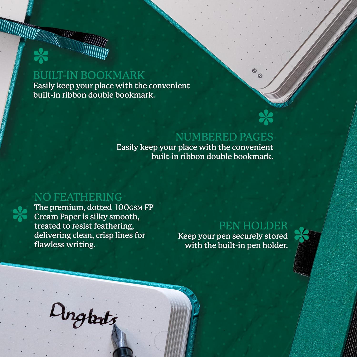 Dingbats* Earth Dotted Writing Journal Notebook A5 - Vegan Leather Hardcover - Ideal for Work, Travel - Pocket, Elastic Closure & Bookmark