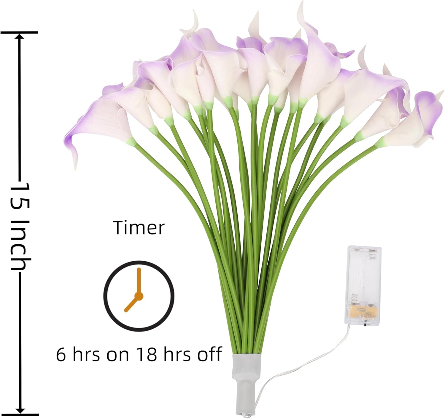 - 4.LIFELIKE & VIVID-Artificial calla lily flowers are full bloom in Spring. Enjoy the joyful look of spring throughout the year,these bendable stems can be adjusted and styled,giving off a fresh-from-the-garden look daytime without lighting up.