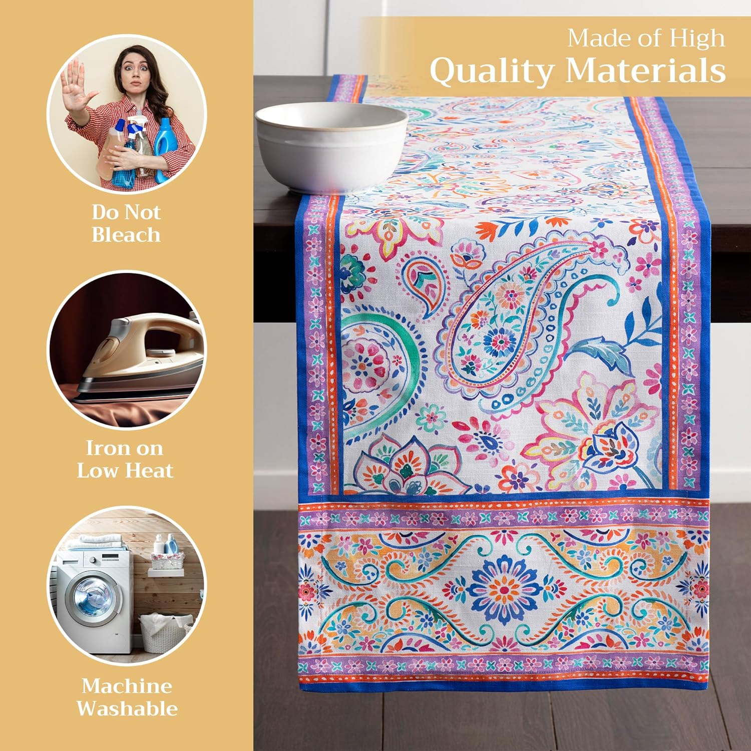 - Easy care & maintenance: Crafted from 100% cotton, this table runner is machine washable with like colors, do not bleach. Tumble dry on low and warm iron if needed. Durable and easy to maintain for everyday or seasonal use.