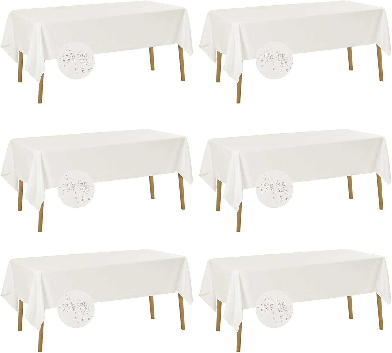Fokitut 6 Pack Waterproof Rectangle Tablecloth, 60x120 Inch,Stain Resistant and Wrinkle Polyester Table Cloth, Fabric Table Cover for Kitchen Dining, Wedding, Party, Holiday Dinner-Ivory