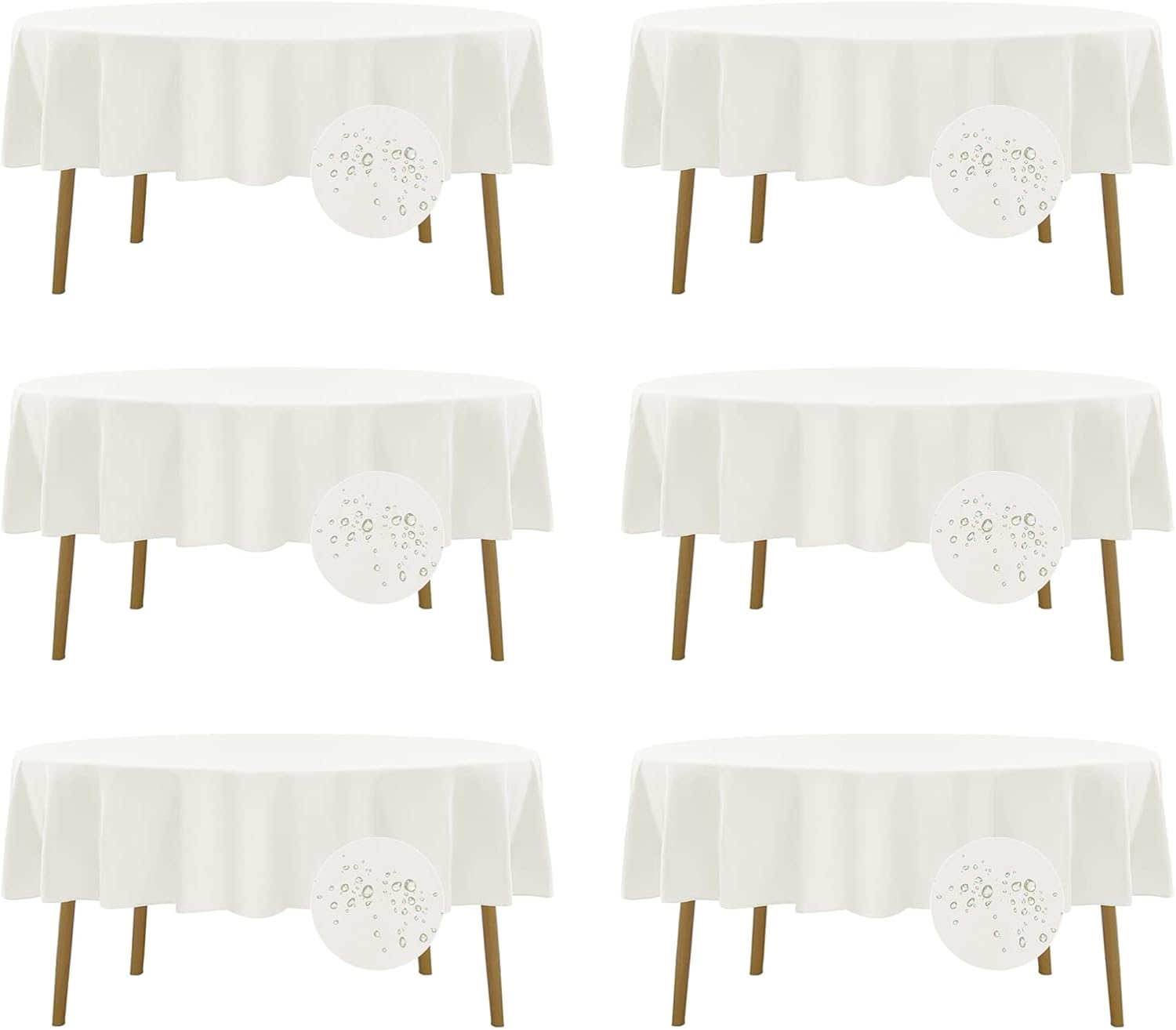 Fokitut 6 Pack Waterproof Round Tablecloth, 70 Inch, Stain Resistant and Wrinkle Polyester Table Cloth, Fabric Table Cover for Kitchen Dining, Wedding, Party, Holiday Dinner-Ivory