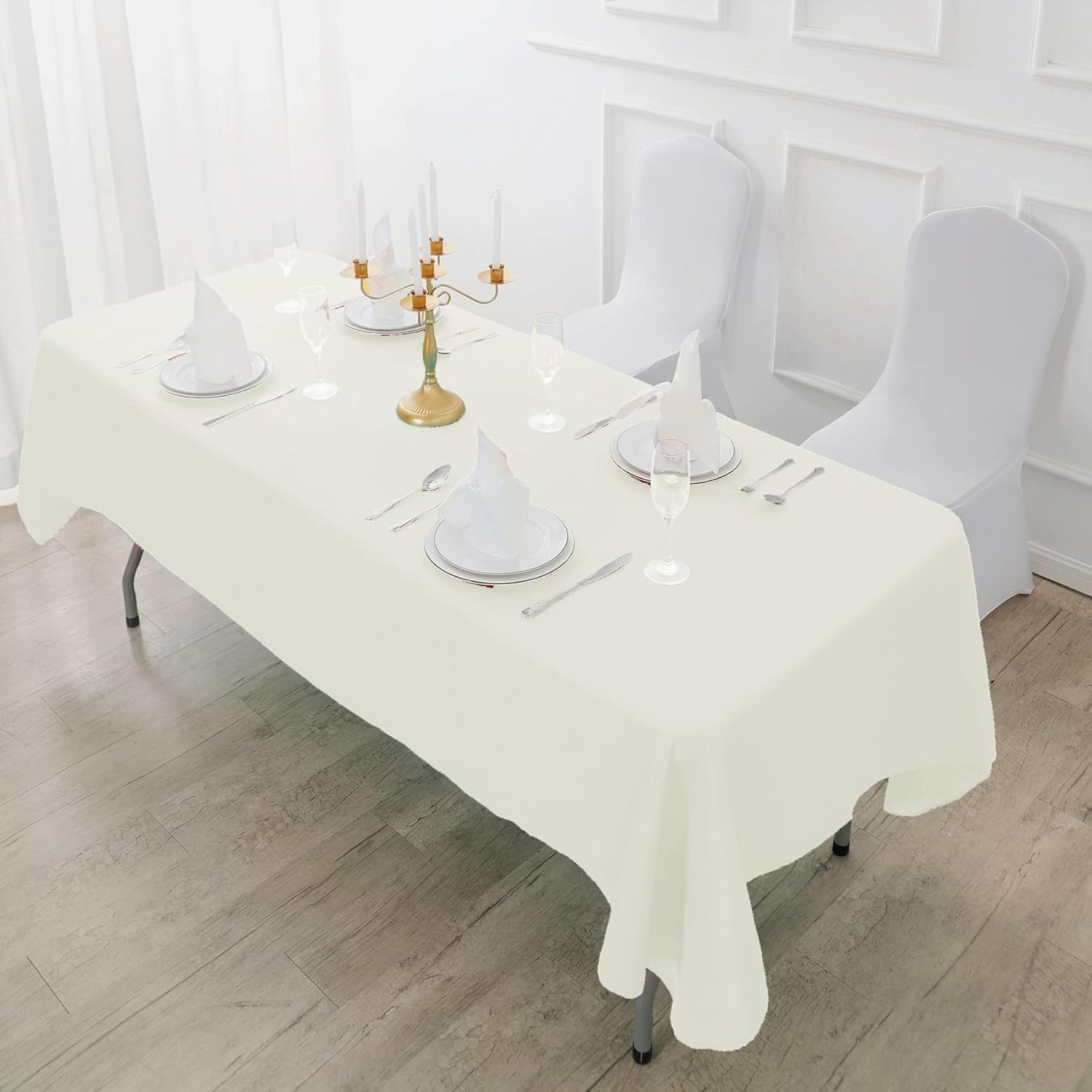 Fokitut 6 Pack Waterproof Rectangle Tablecloth, 90x156 Inch,Stain Resistant and Wrinkle Polyester Table Cloth, Fabric Table Cover for Kitchen Dining, Wedding, Party, Holiday Dinner-Ivory