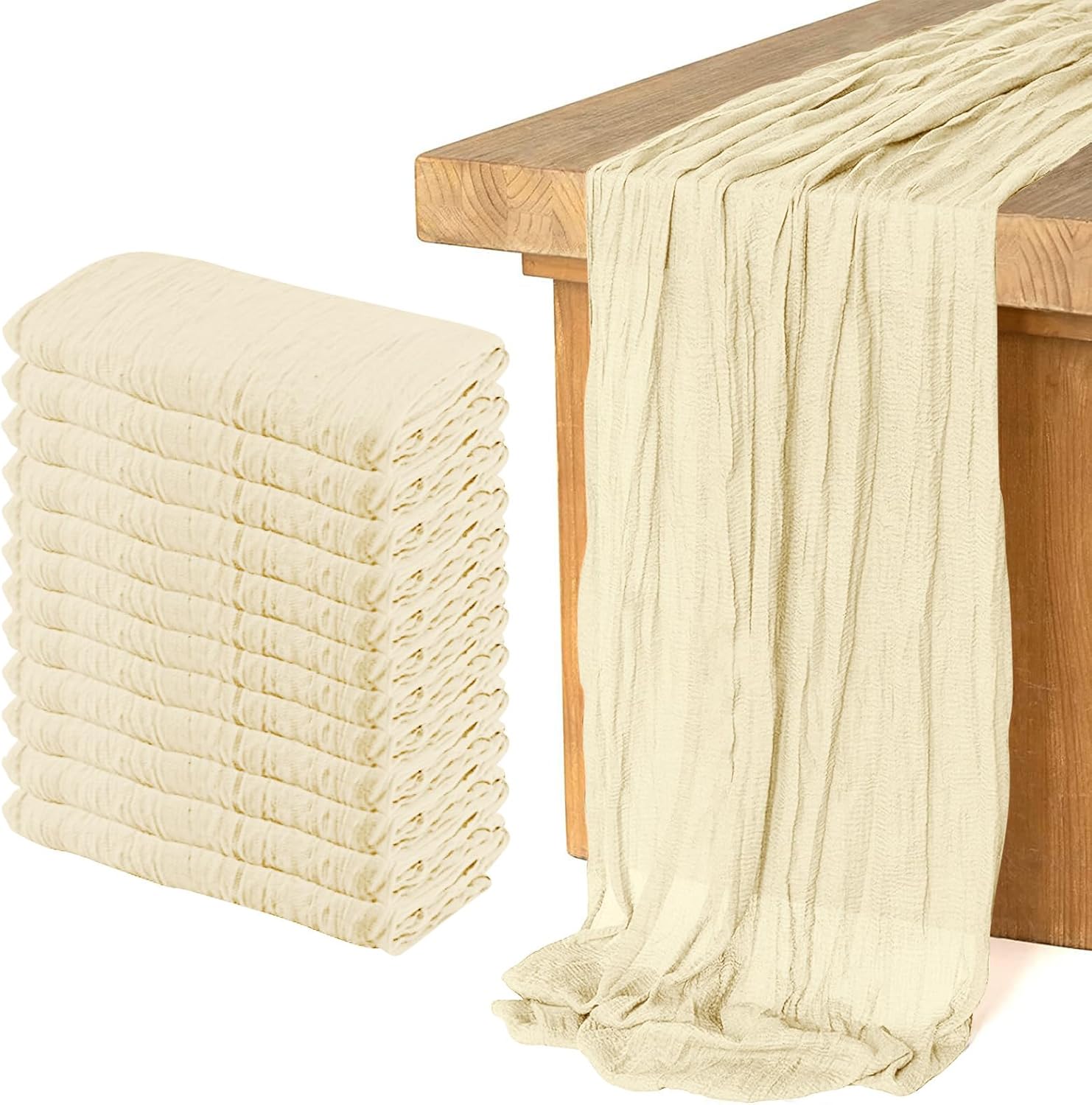 12 Pack Cheesecloth Table Runner, Runner Gauze Boho Wedding Decor Romantic Table Runner for Wedding Birthday Party(35" x 118") (Beige)