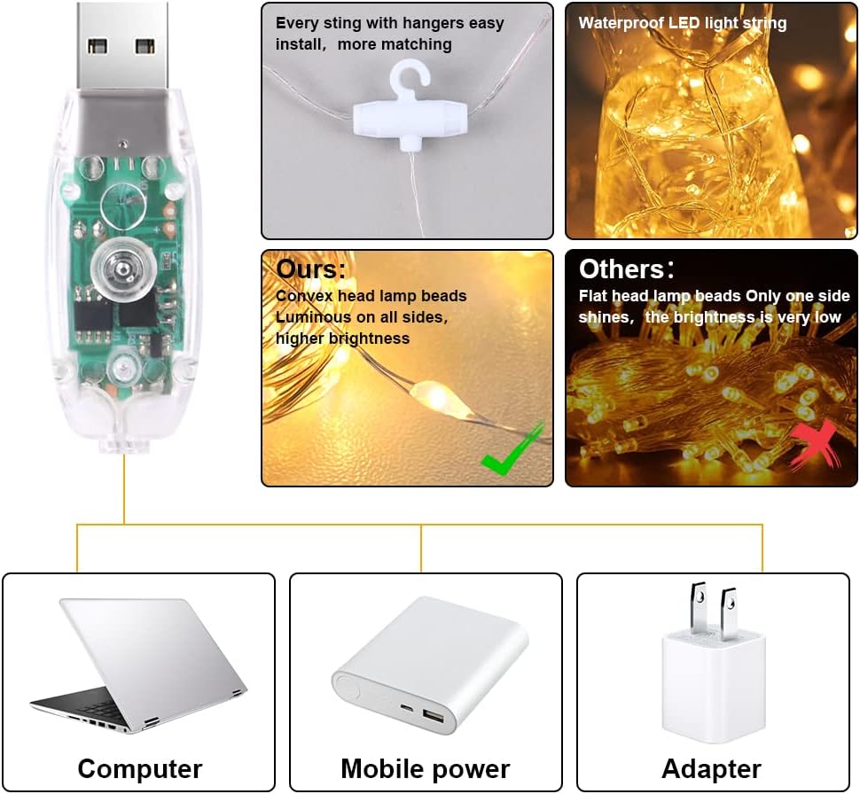 - 💡【USB Powered】Fairy Curtain LightsPower by USB, this curtain light has a USB charging port. Window Curtain String Light can be Plugged in with a USB charger, Suitable for more places to get powered even in camping or barbecue. Or Powered by a power bank, laptop, cellphone adapter, and more.