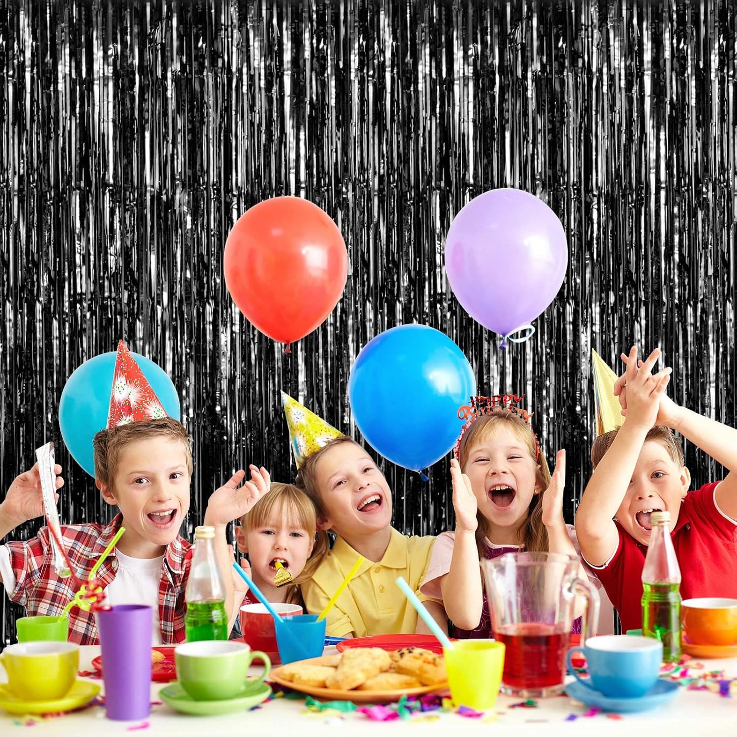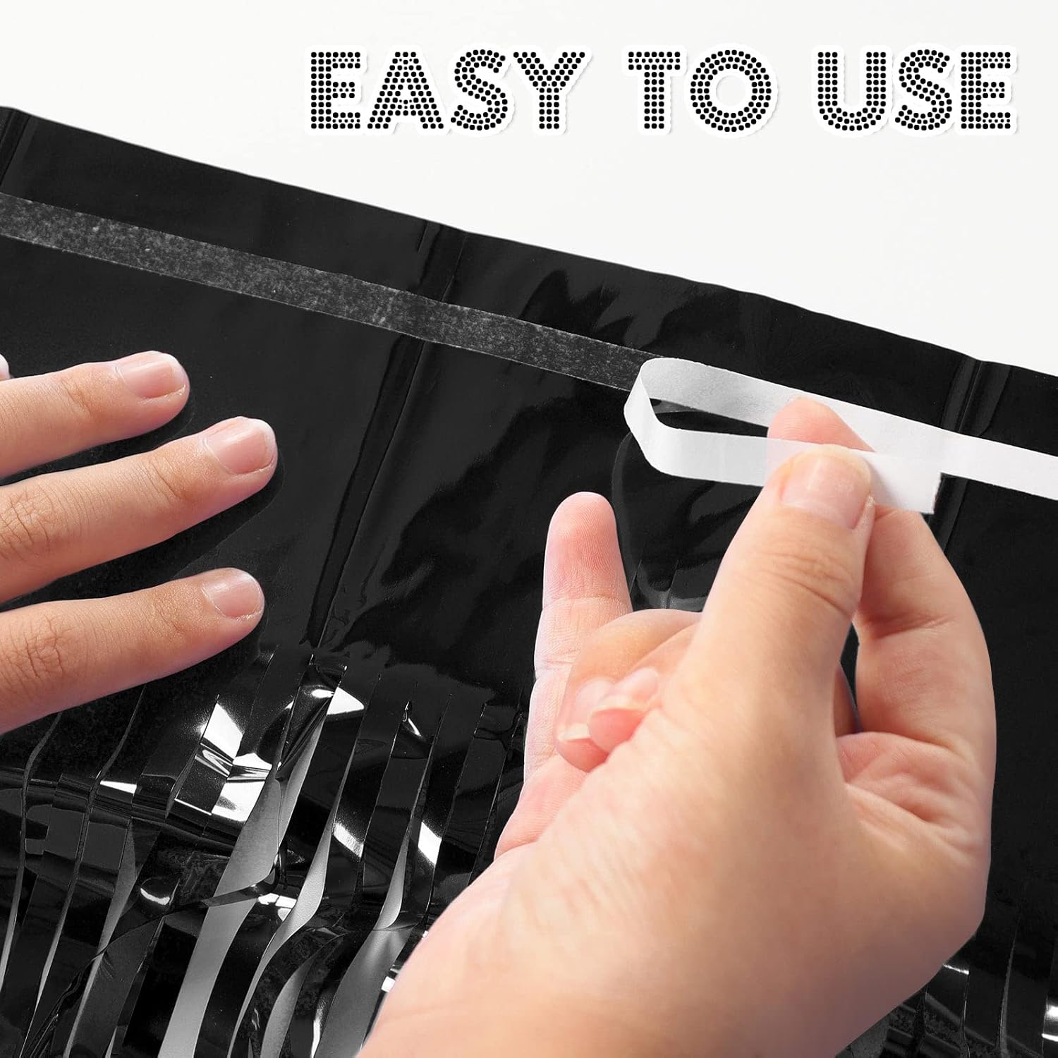 2 Pack Black Fringe Curtains Foil Shiny Fringe Backdrop Tinsel Door Streamers Foil Curtains for Birthday Wedding Engagement Bridal Shower Celebration Party Decorations Large