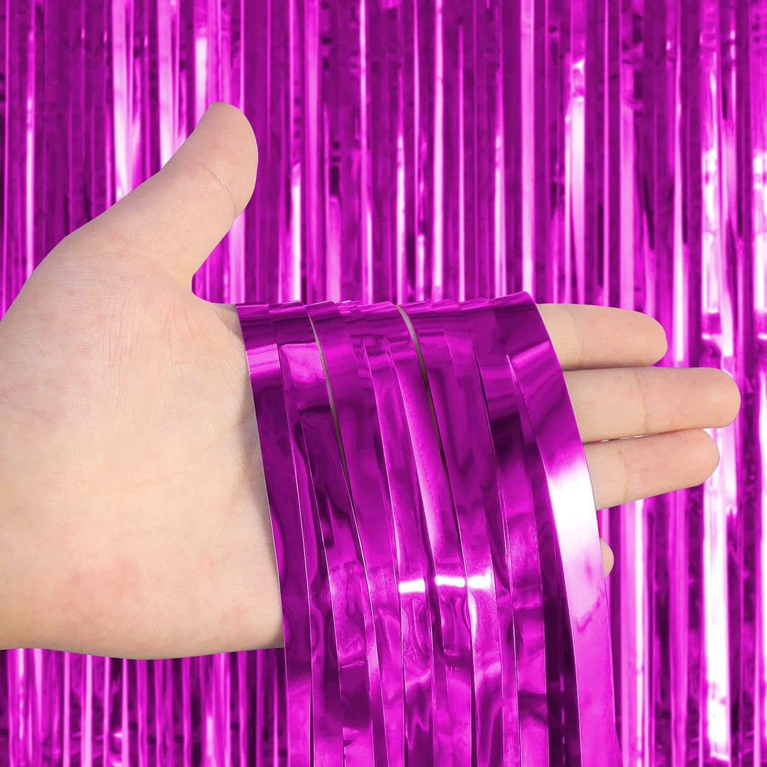 - Sparkling Fringe Curtains: 2 packs foil fringe curtains. Each pack fringe curtains size is 3.28 x 8 ft. DIY party decorations according to your needs