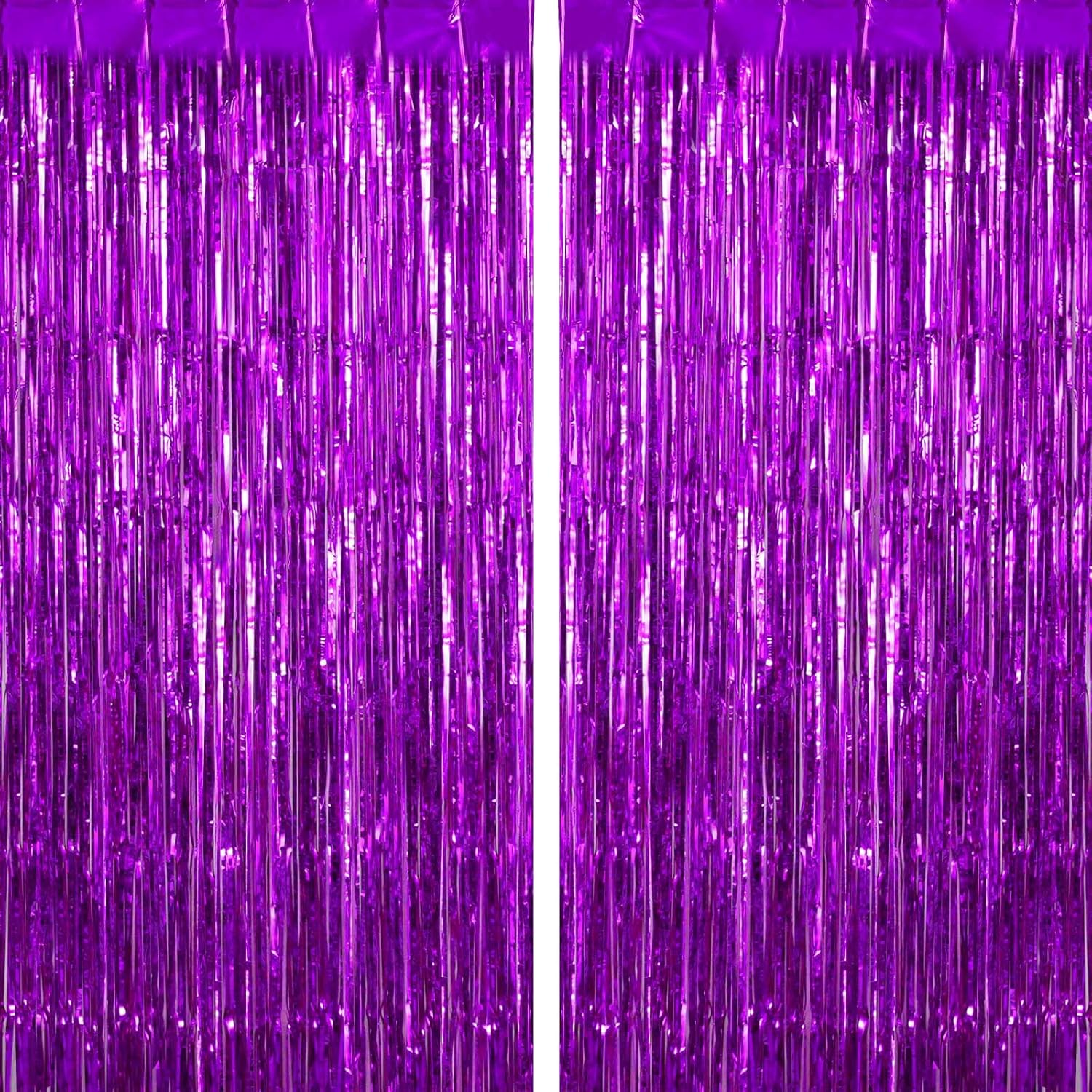 2 Pack Purple Fringe Curtains Foil Shiny Fringe Backdrop Tinsel Door Streamers Foil Curtains for Birthday Wedding Engagement Bridal Shower Celebration Party Decorations Large