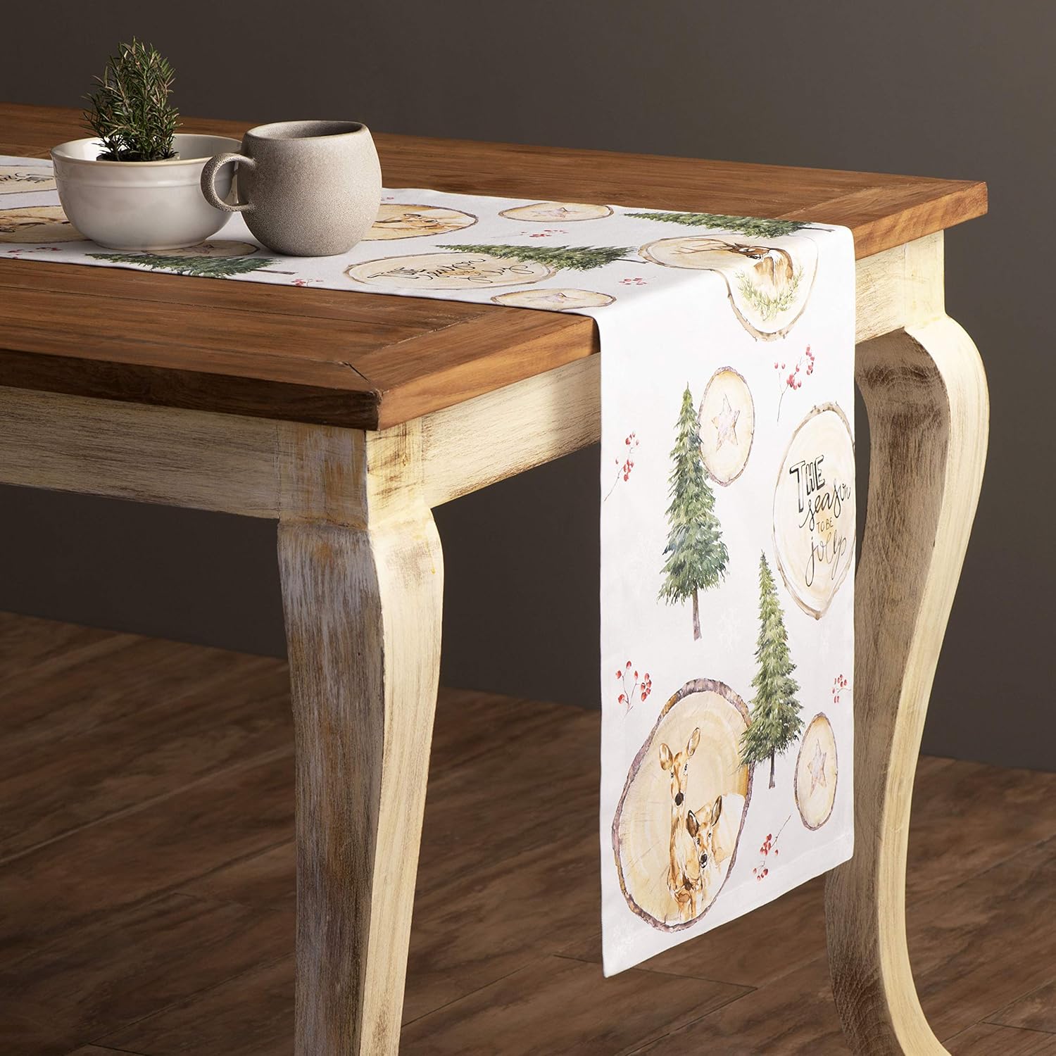 Maison d' Hermine Table Runner 100% Cotton Single Layer Table Runners 48 inches Long for Thanksgiving Christmas Decorations Home Kitchen Dining Party Wedding (Mountain Life, 14.5" x 48")