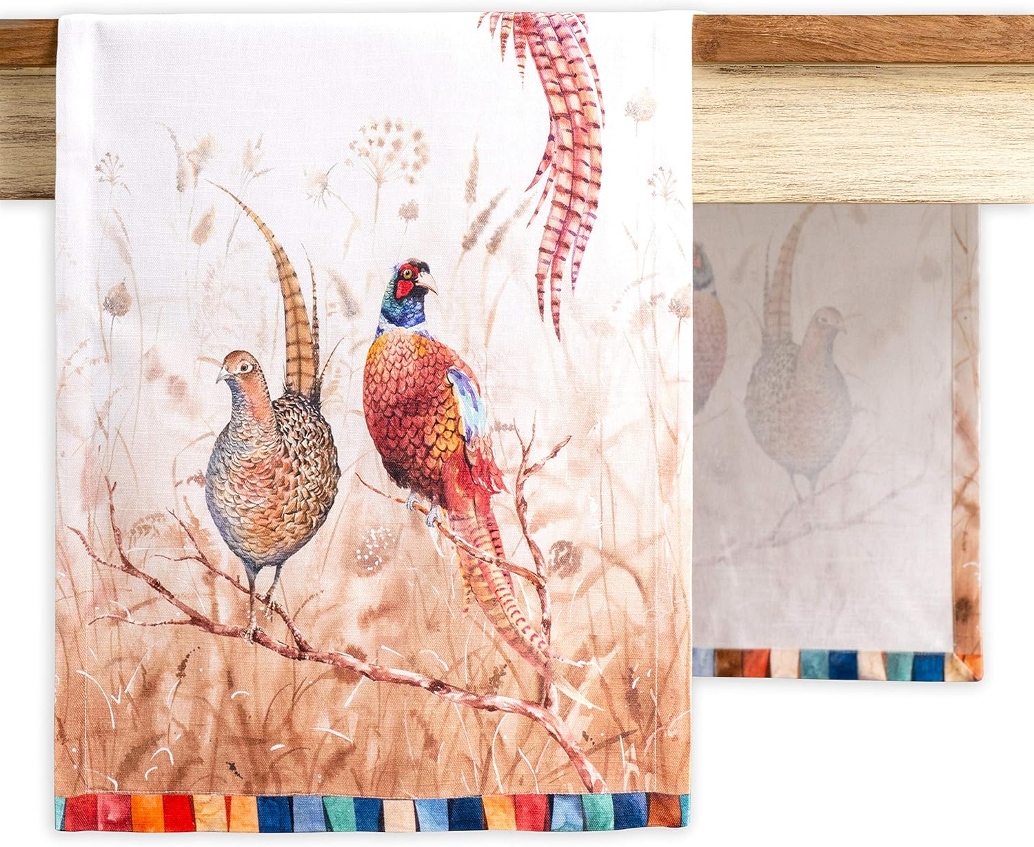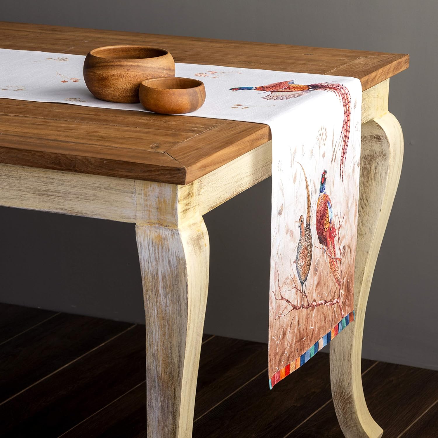 Maison d' Hermine Table Runner 100% Cotton Single Layer Table Runners 90 inches Long for Thanksgiving Christmas Decorations Home Kitchen Dining Party Wedding (Faisan D'Automne, 14.5" x 90")