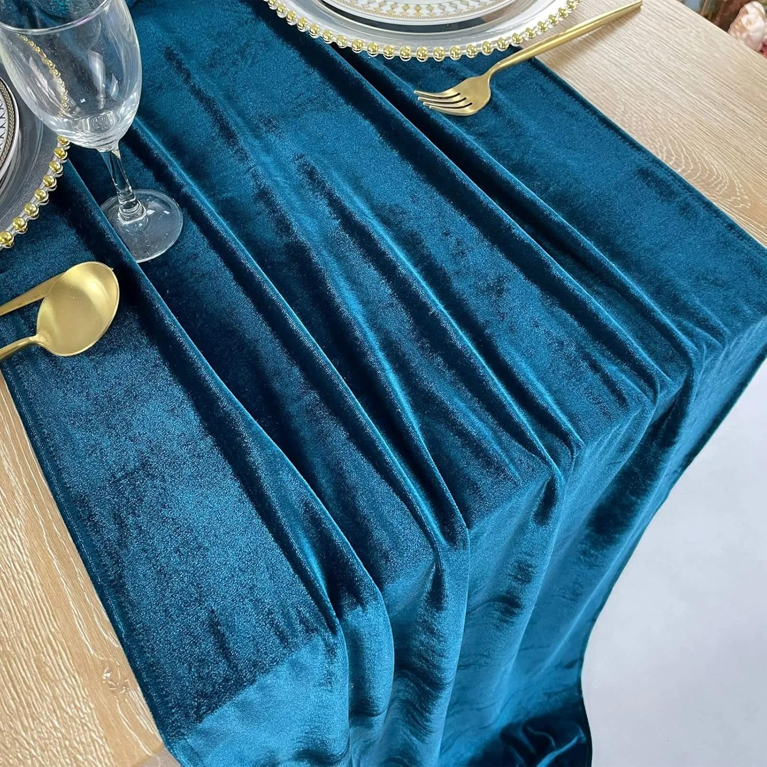 Luxurious Velvet Table Runner, 10ft Wedding Reception Decorations, 20x120inch Soft Velvet Fabric, Table Linen Overlay, Wedding Table Runners (Teal Blue, 20X120inch, 2pack)