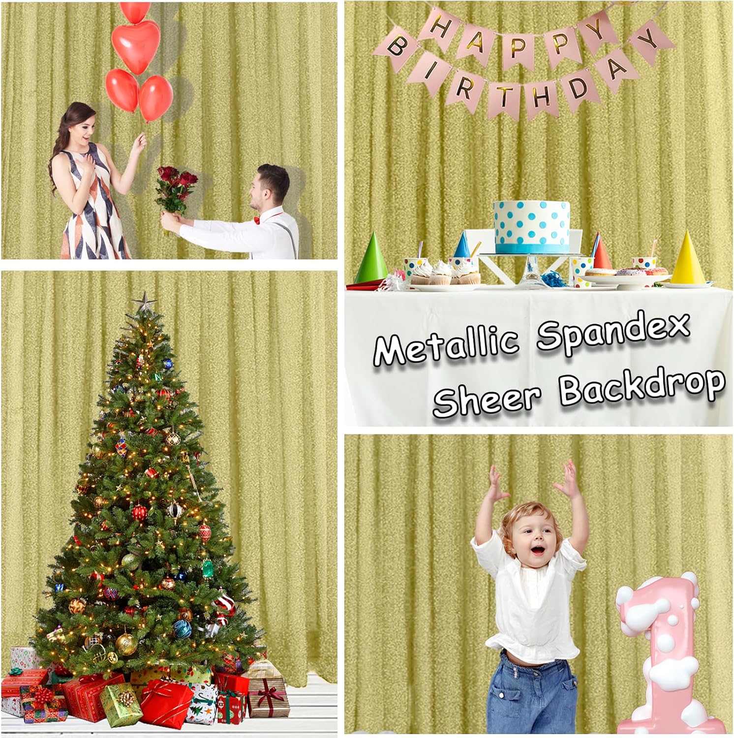 10FT x10FT Champagne Metallic Sheer Spandex Backdrop, 1 Panel Glitter Photography Background, Stretchy Spandex Fabric for Wedding, Party, Baby Shower, Photo Booth Decor