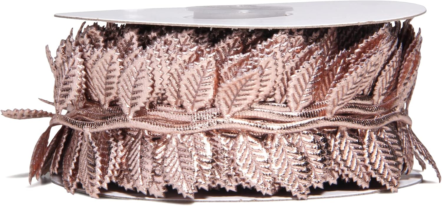 BASOKAN Rose Gold Leaves Ribbon for Wedding Party Home Decorations - 20 Yards - Leaf Trim Rope for Garland and DIY Crafts