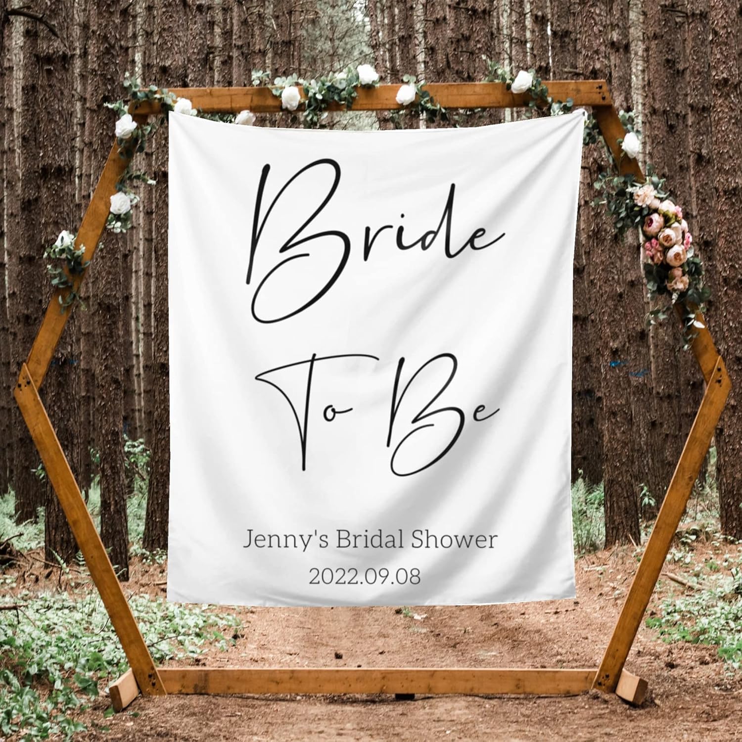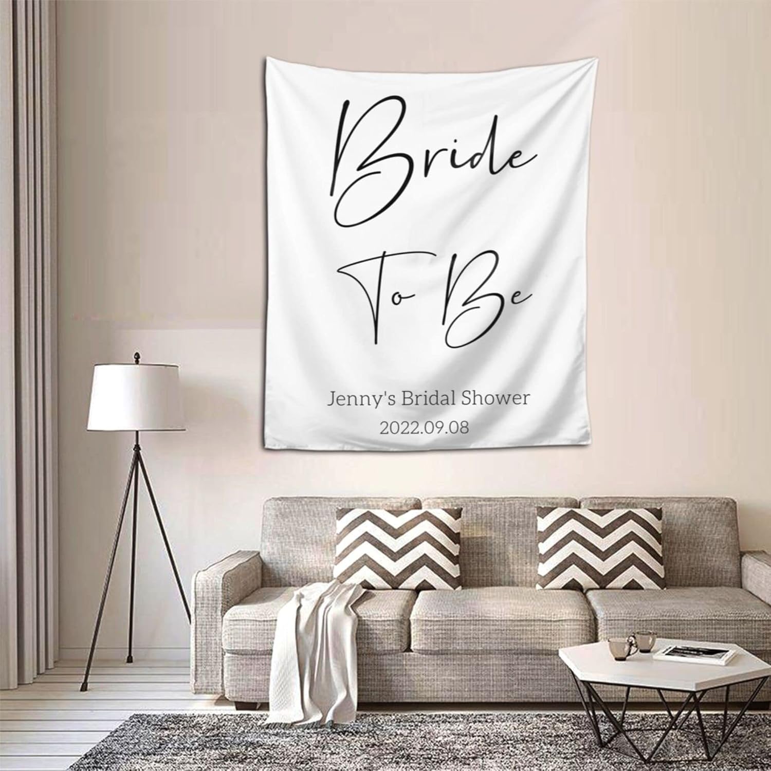 Bride to Be Backdrop - Custom Tapestry With Names and Date, Personalized Calligraphy Banner for Bridal Brunch, Shower, Engagement, Bachelorette Party - Future Mrs Reception
