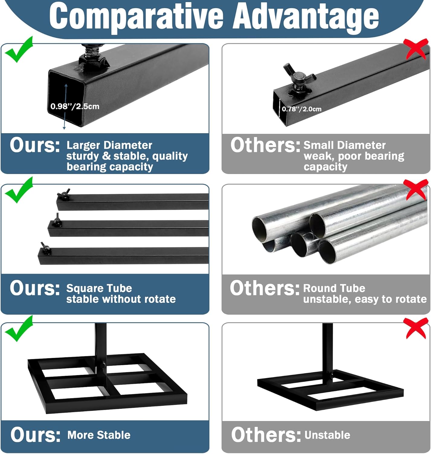 - 【Sturdy Photo Backdrop Stand】10x10 ft/3x3 M square metal arch stand with 1.0mm thick high toughness and anti-rust square steel pipe, more stable than circular tube without easily twist. Sturdy base legs provides a firm and balanced support, safe and secure.