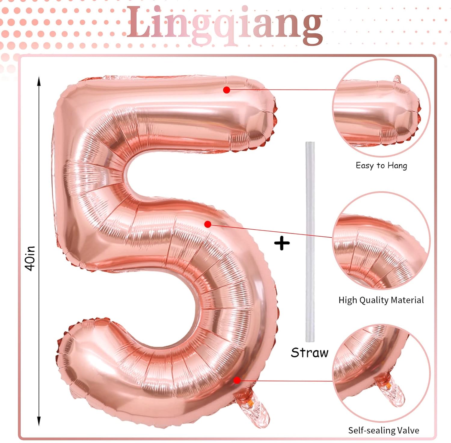 - š Rose Gold Number 5 Balloon š - You will get 1pc 40 inch mylar foil number 5 balloon and 1pc straw. Perfect for 5th 15th 25th 50th 45th birthday or anniversary party decorations supplies.