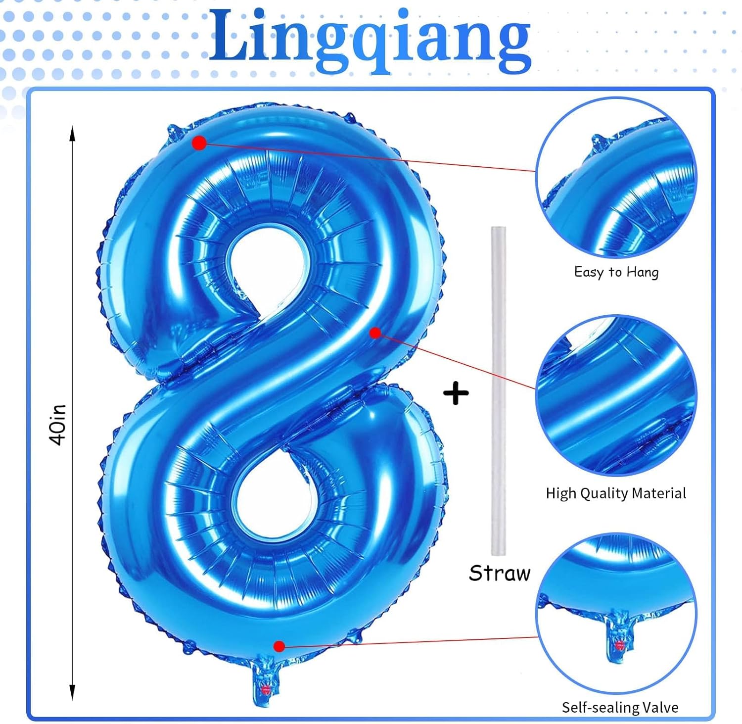 - š Blue Number 8 Balloon š - You will get 1pc 40 inch mylar foil number 8 balloon and 1pc straw. Perfect for 8th 18th 28th 80th 85th birthday or anniversary party decorations supplies.