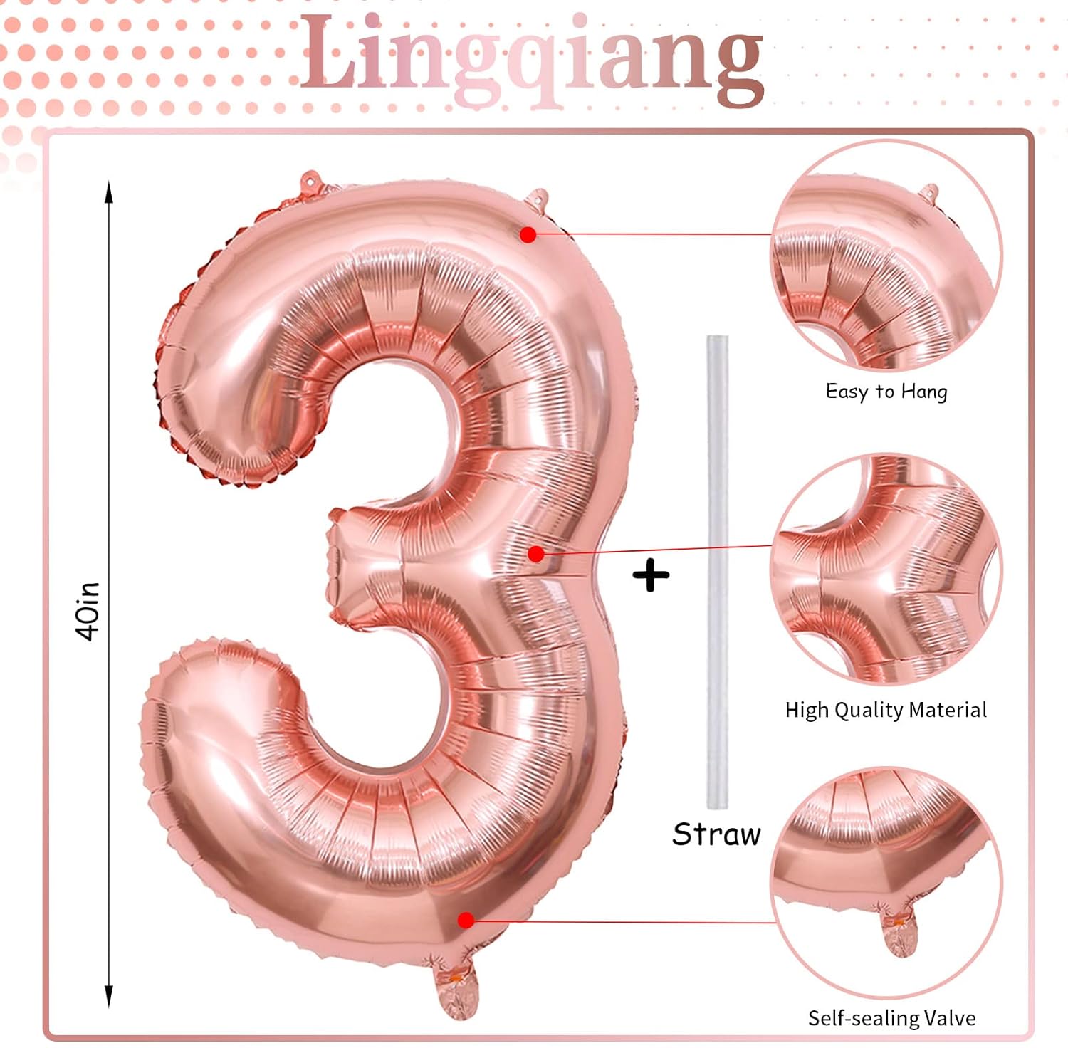 - š Rose Gold Number 3 Balloon š - You will get 1pc 40 inch mylar foil number 3 balloon and 1pc straw. Perfect for 3rd 13th 30th 35th birthday or anniversary party decorations supplies.