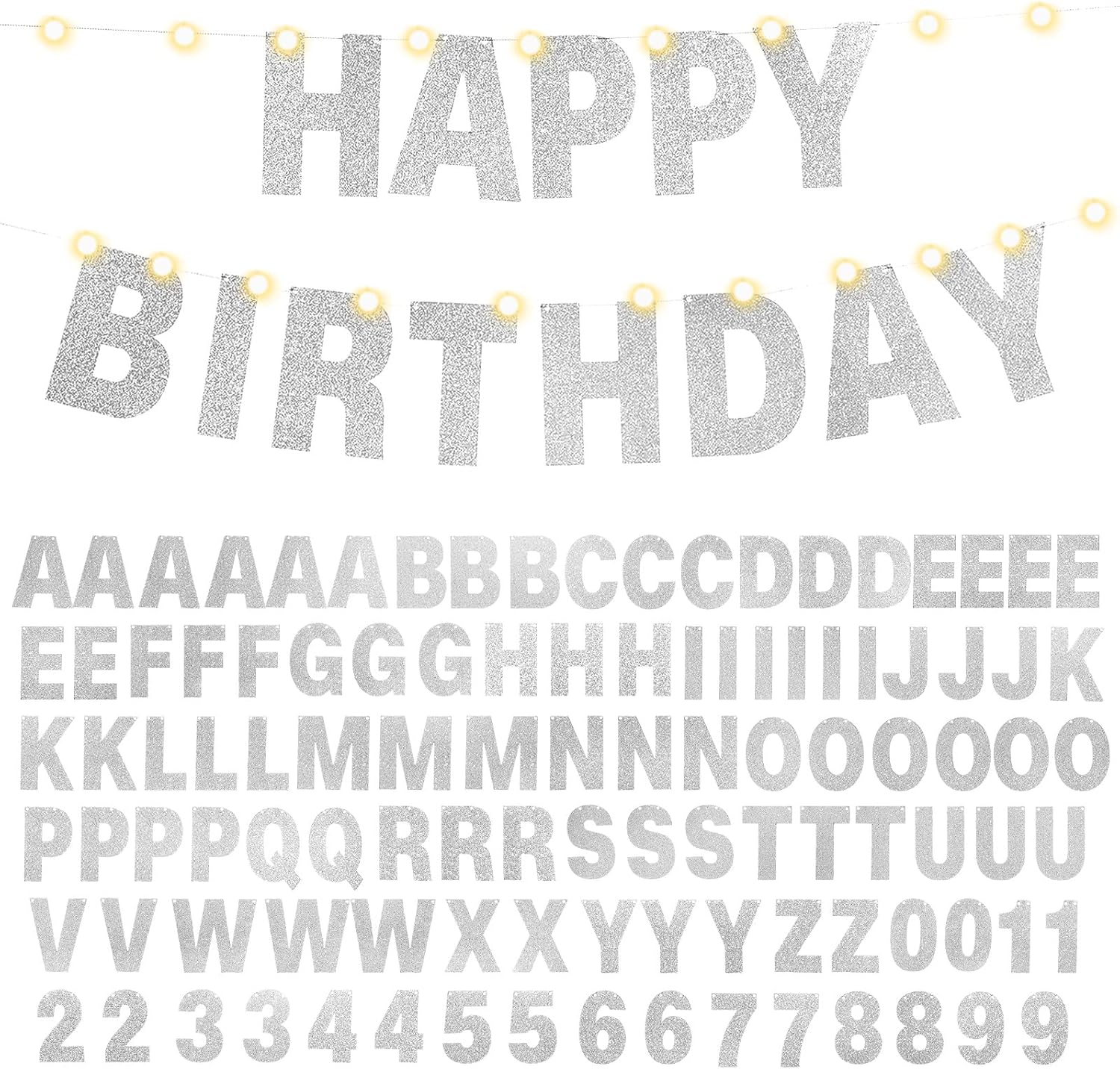 TaoBary 112 Pcs DIY Letter Custom Banner Glitter Customizable Banner Kit Including 107 Letters and Numbers 3 Rope for Valentine Birthday Party(Silver)