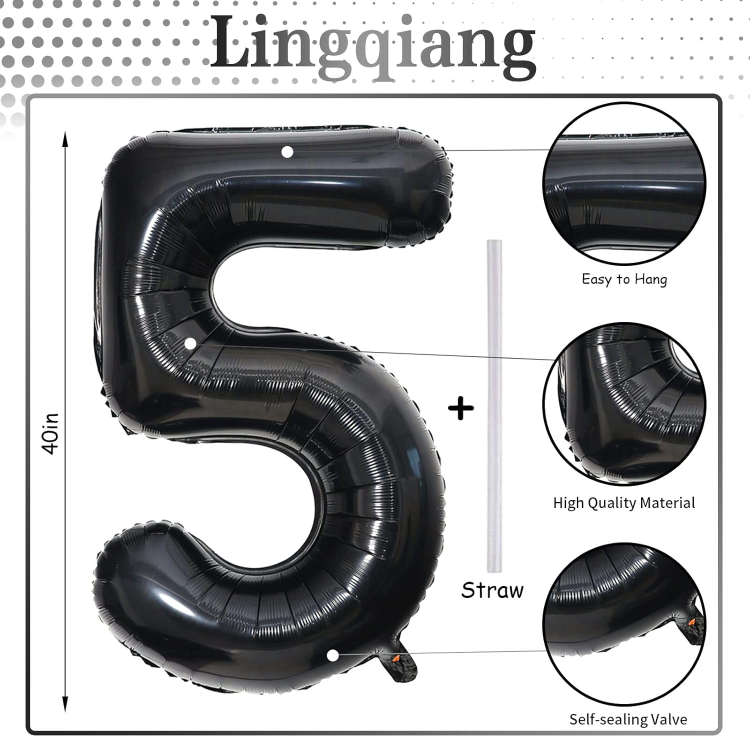 - š Black Number 5 Balloon š - You will get 1pc 40 inch mylar foil number 5 balloon and 1pc straw. Perfect for 5th 15th 25th 50th 45th birthday or anniversary party decorations supplies.