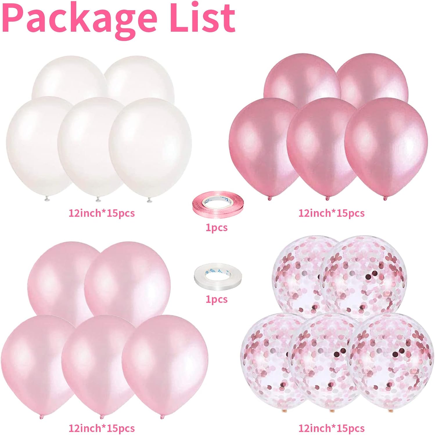 Balloons Pink and White, 60 Packs 12 Inch Light Pink White Balloons with Confetti Balloons for Birthday Party Decorations Girl Women, Wedding, Christening Baby Shower Party, Bridal Shower