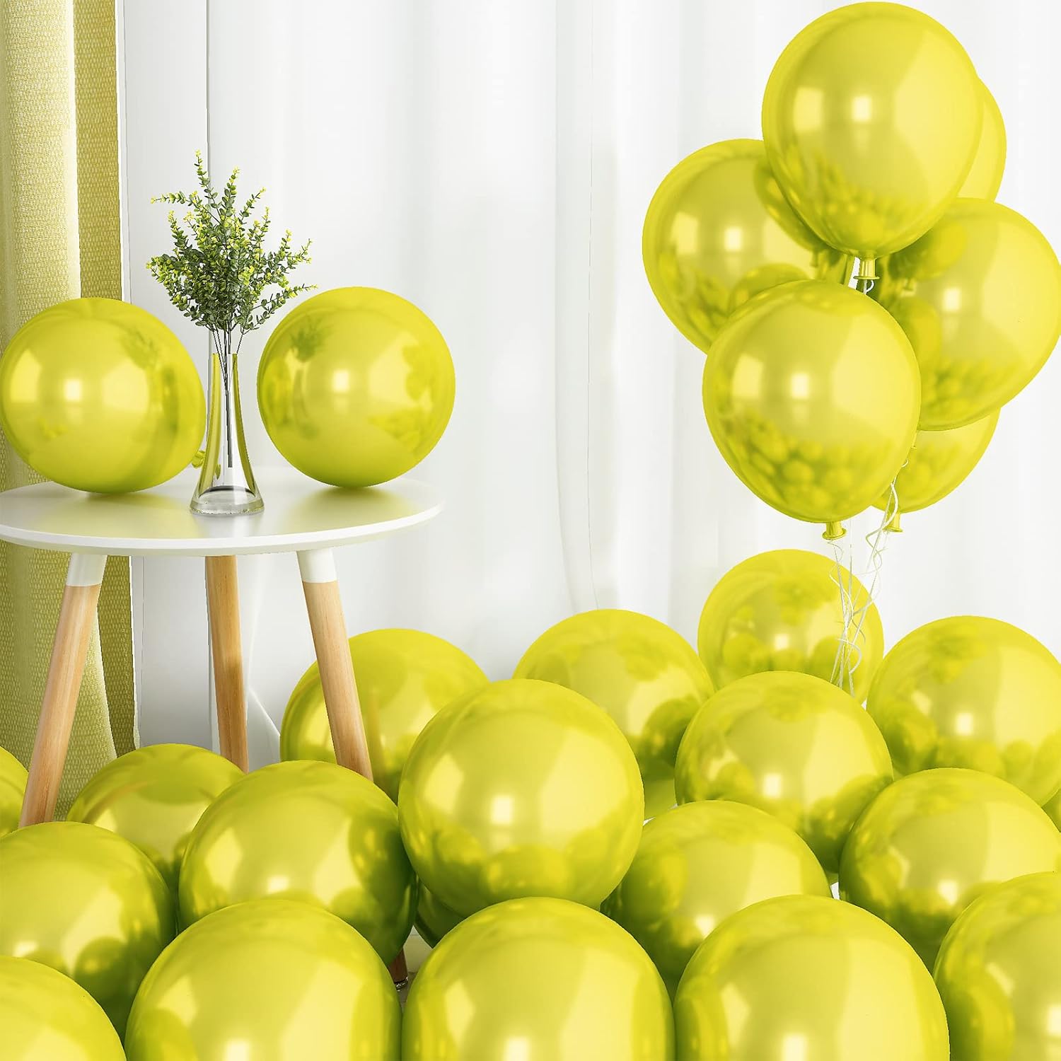 - 🎈50 PCS METALLIC CHROME YELLOW BALLOONS: The valued party balloon set include 50pcs 10inch double layer metallic chrome yellow balloons and 1pcs ribbon. Metallic luster unique design balloons for every party.