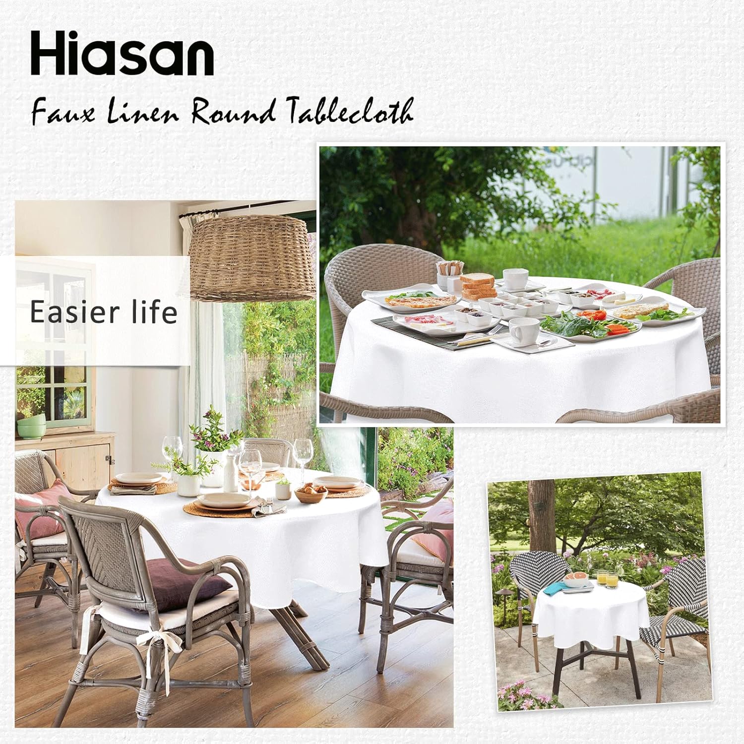 Hiasan Round Linen Table Cover 50 Inch - Wrinkle and Stain Resistant Washable Polyester Fabric Table Cloth for Dining Room Kitchen Party, White