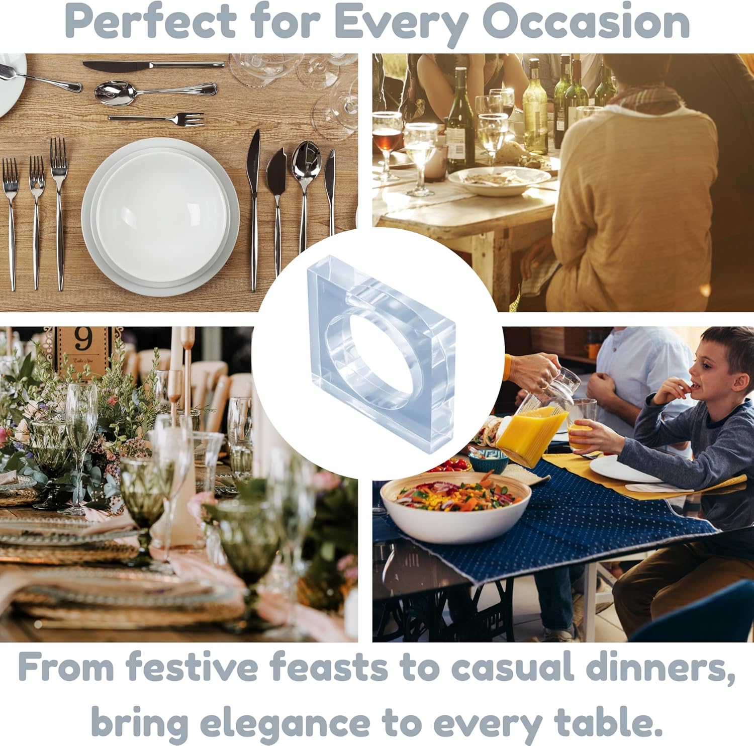 Acrylic Set of 12 Square Beveled Napkin Ring - Cloth Napkin Rings Serviette Buckles for Wedding, Birthday, Banquet, Table Décor, Home Décor, Gifting (Transparent) - CLEENTABLE