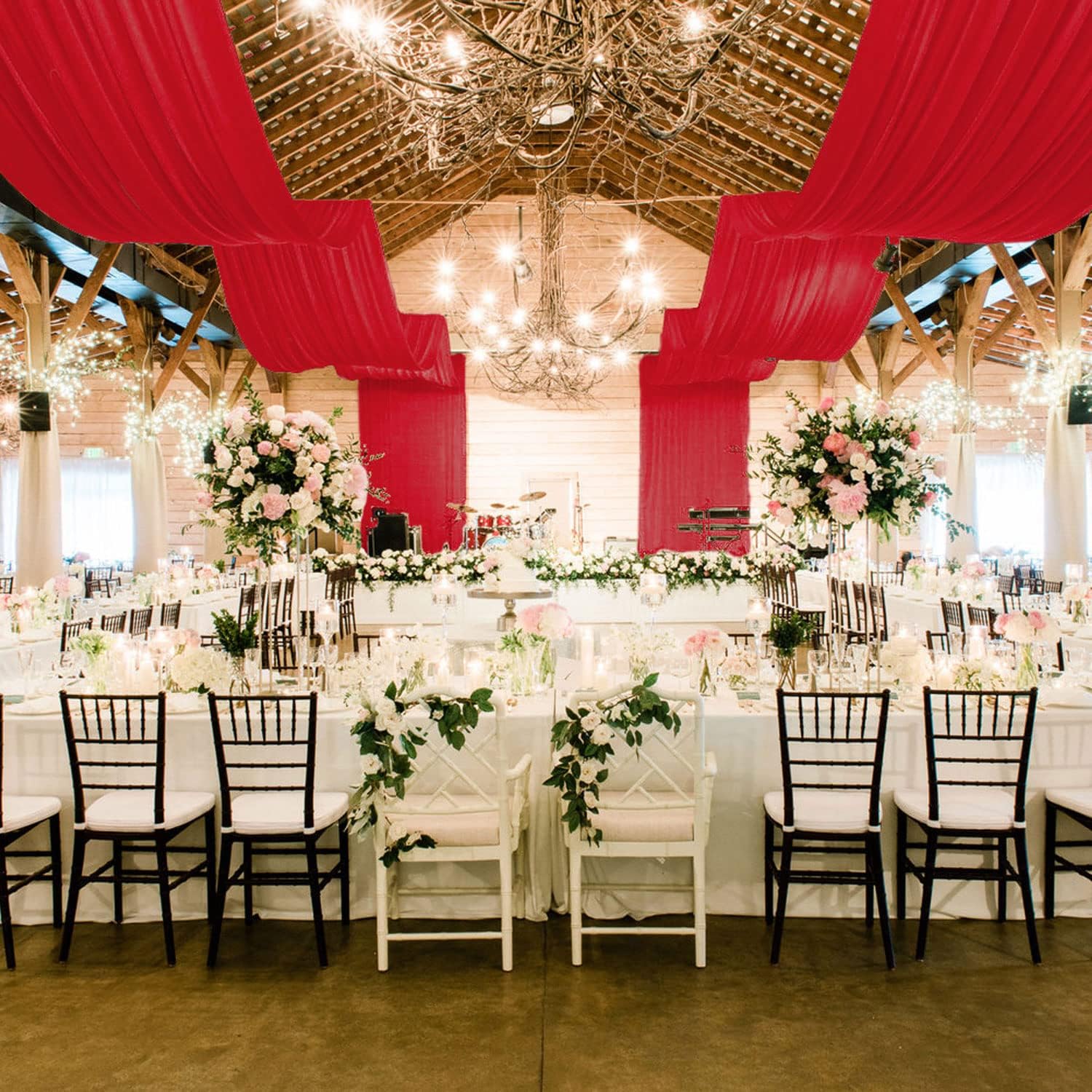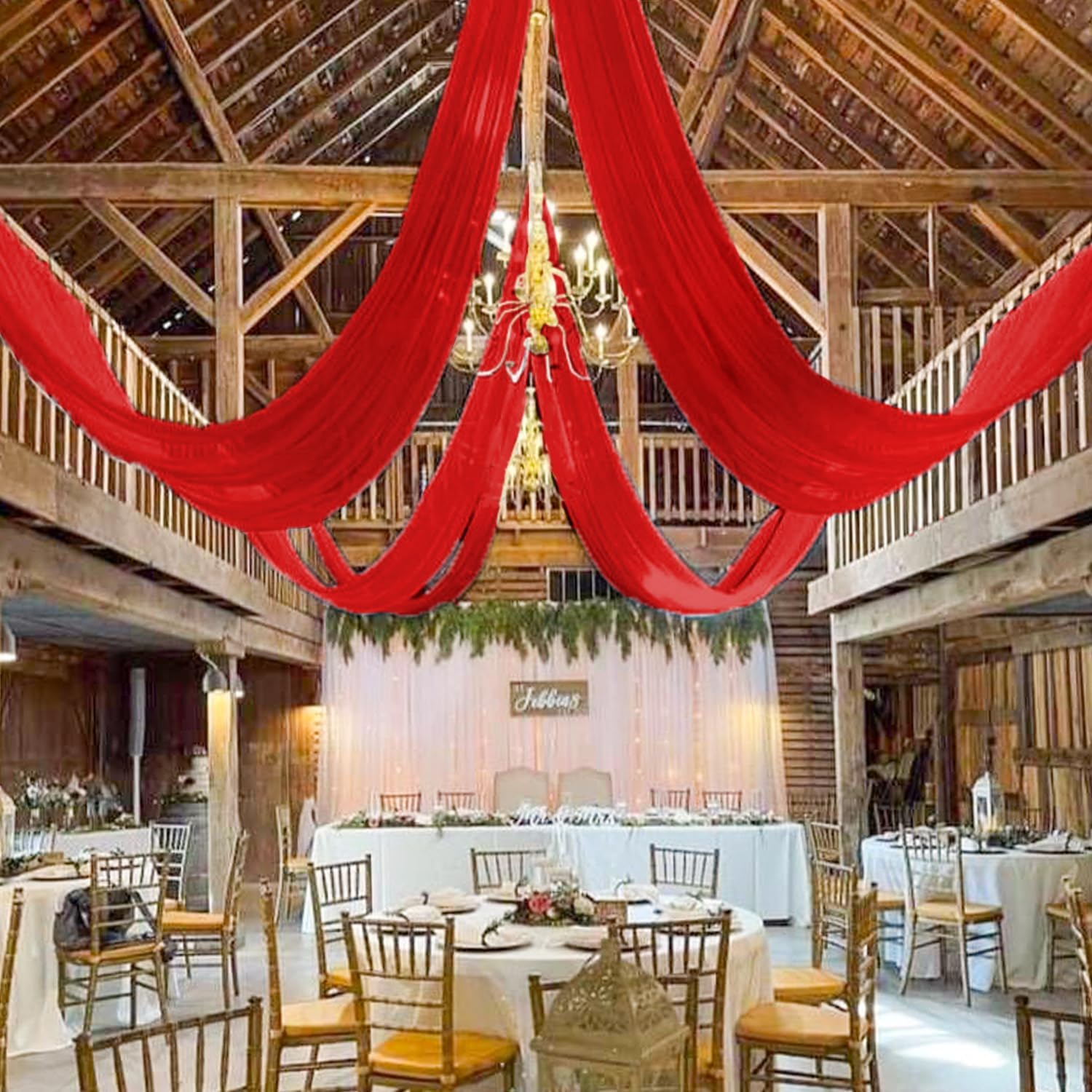 - ⭐Quality Material - Ceiling Drapery for Wedding: The material of wedding arch draoes fabric is premium sheer chiffon fabric, silky soft and wrinkle-free, sturdy and reusable. More graceful than other nylon fabrics. All edges of red ceiling panels are finished with with nice stitching. The wedding arch drapery is a good choice for party decoations, giving your events an elegant and romantic look.