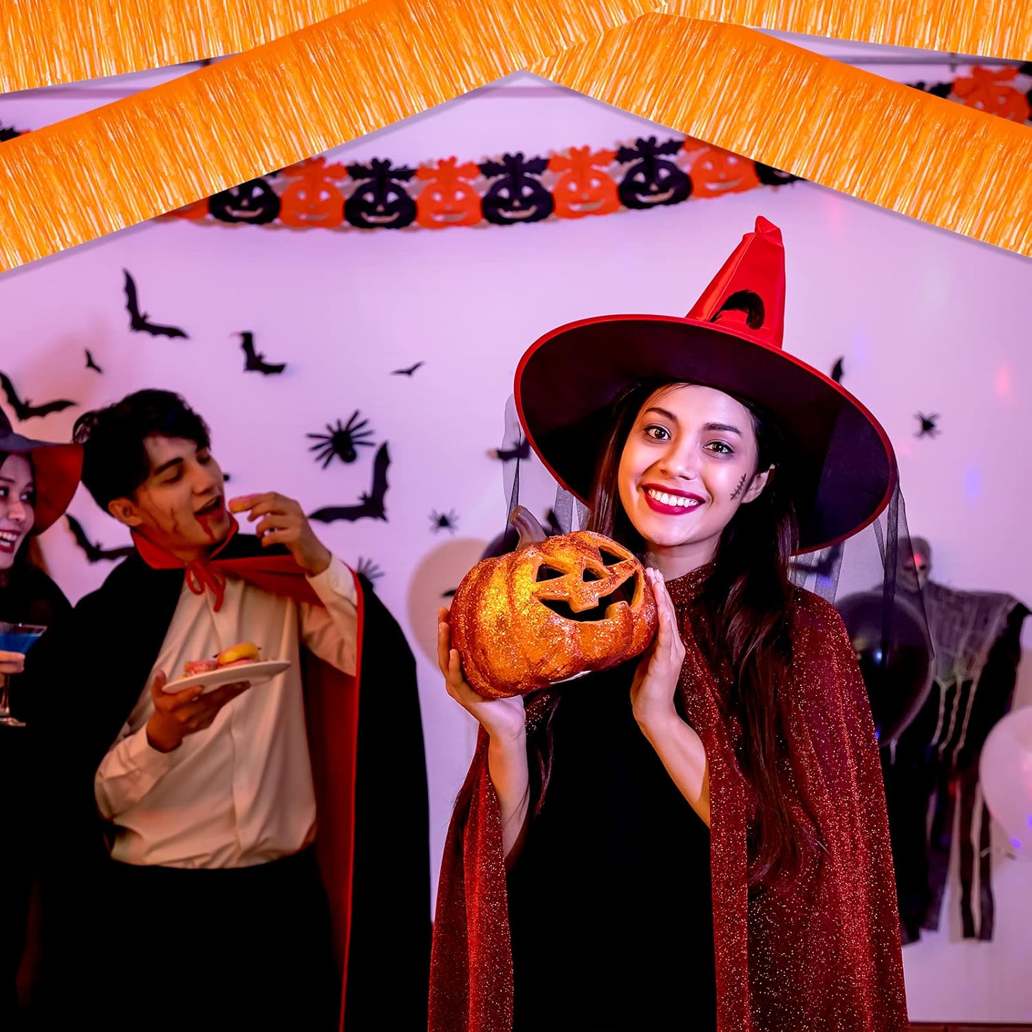 10 Pack 10 Feet Foil Fringe Garland Metallic Tinsel Streamers Banner Wall Hanging Curtain Backdrop for Parade Floats, Bachelorette, Wedding, Birthday, Halloween, Christmas Party Decorations(Orange)