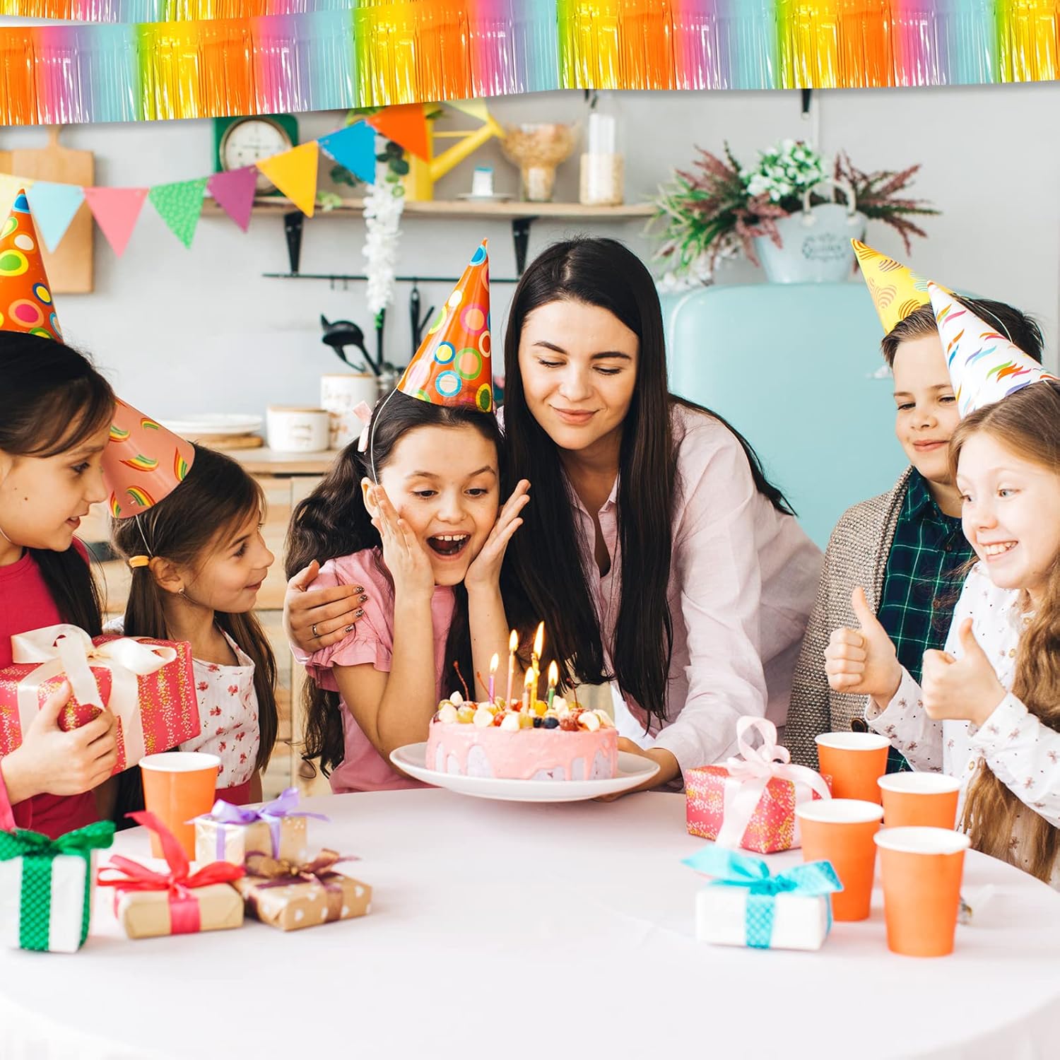 - 【Easy to Use】each metallic foil fringe garland comes with self-adhesive tape on the top for easy attachment to your wall or table, just peel off the tape and then stick, easy and fast to install.