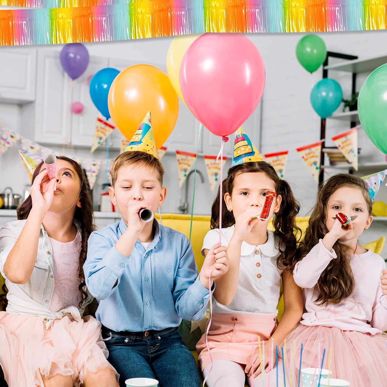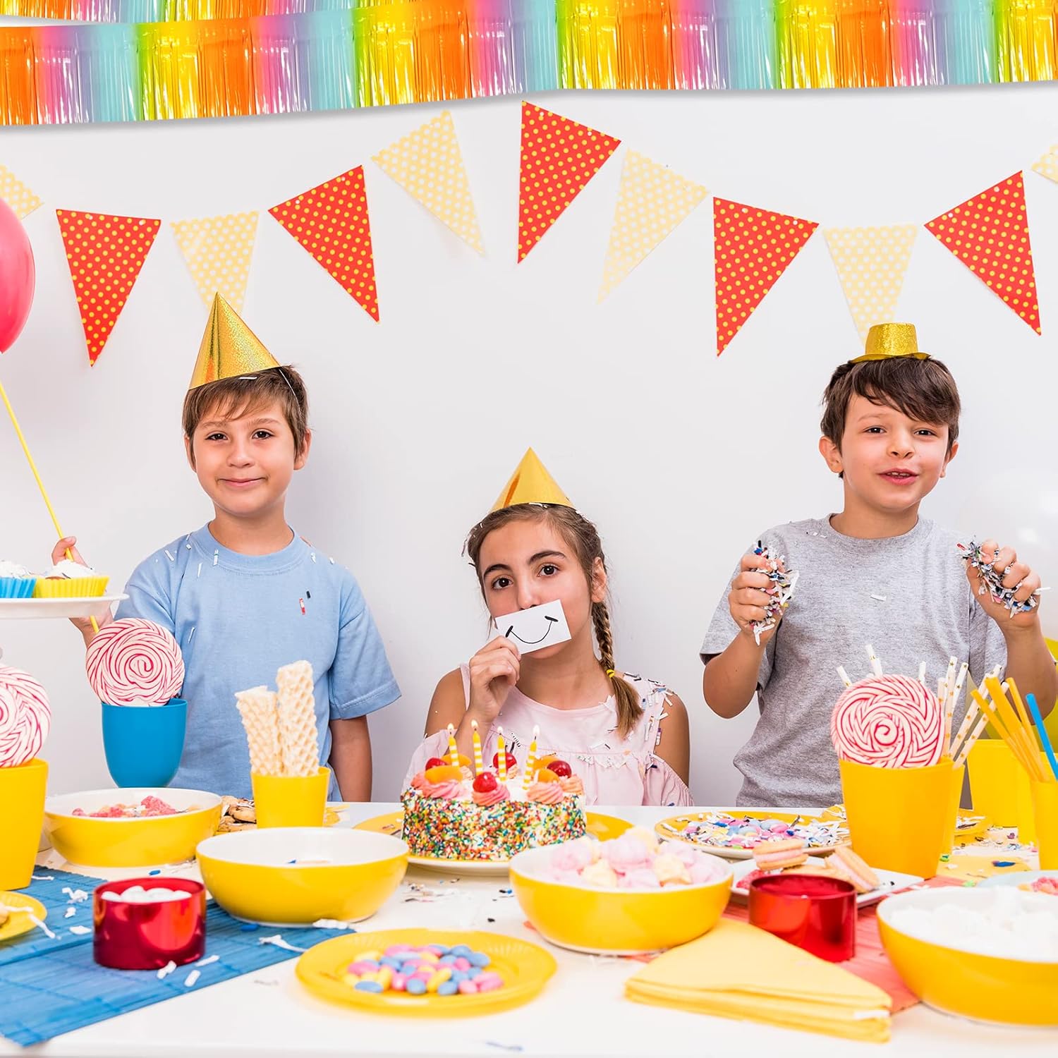- 【Multiple Colors】Pair with metallic foil fringe garland of different colors to achieve the color combination you want. Show off your creativity by pairing this gold foil wall hanging banner with other garland in different colors to fulfill your dream of creating the perfect party scene.