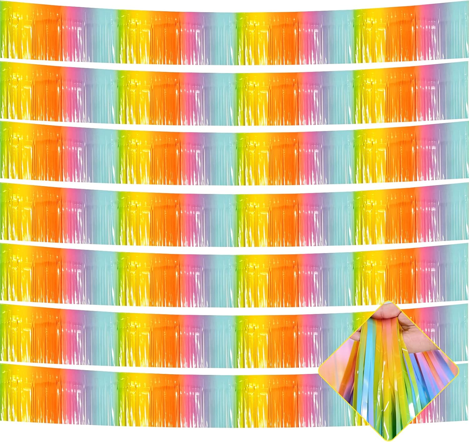 10 Pack 10 Feet Foil Fringe Garland Metallic Tinsel Streamers Banner Wall Hanging Curtain Backdrop for Parade Floats, Bachelorette, Wedding, Birthday, Easter, Carnival Party Decorations(Rainbow)
